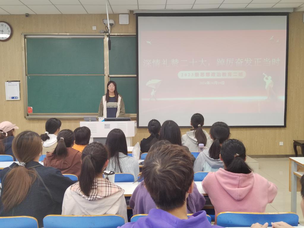 为确保思想统一和组织统一,10月18日上午,金年会jinnianhuicom2023级思想政治教育二班开展“深情献礼二十大,踔厉奋发正当时”主题团课。本次团课由团支书主持,全体二班同学参加。