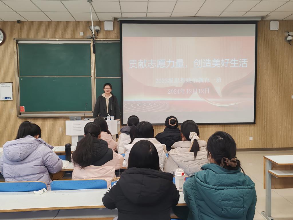 为弘扬志愿服务精神,强化我班学子的社会责任意识,12月12日上午,金年会jinnianhuicom2023级思想政治教育一班在社科楼515教室召开“聚此国庆,与时偕行”主题团课。2023级思想政治教育一班全体同学参与本次团课,团课由团支书张卓主持。