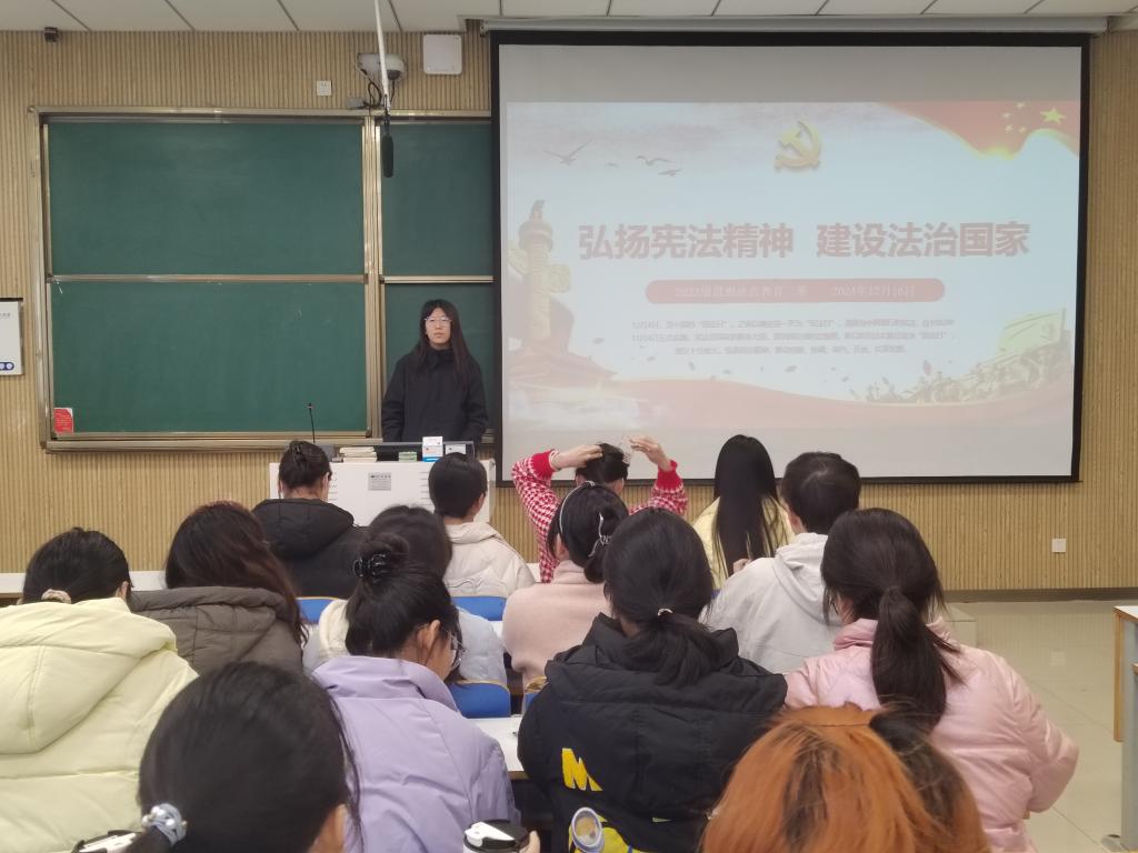 为进一步在班级内弘扬宪法精神,宣传法治意识,12月16日上午,金年会jinnianhuicom2023级思想政治教育二班在社科楼515教室开展“弘扬宪法精神,建设法治国家”主题团课,本次团课由团支书王慜初主持,全体二班同学参加。