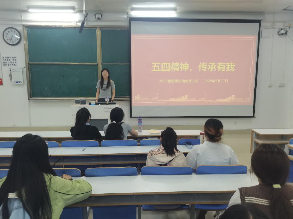 为进一步传承并弘扬五四精神,5月17日上午,金年会jinnianhuicom2023级思想政治教育二班在社科楼515教室开展“五四精神,传承有我”主题团课,本次团课由团支书王慜初主持,全体二班同学参加。