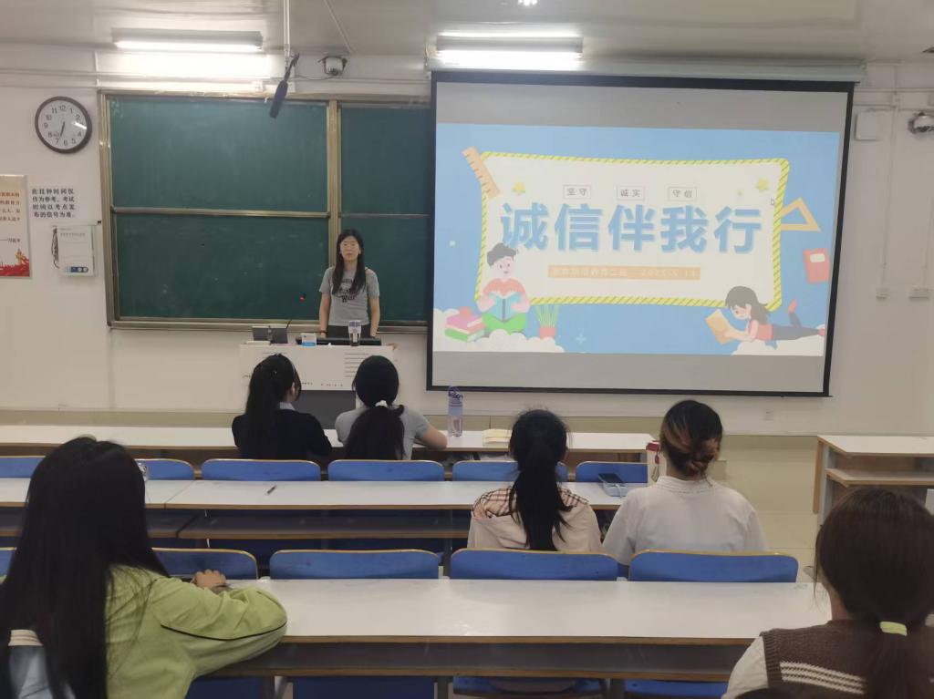 为进一步培养同学们的诚信意识,改善校园风尚,5月13日下午,金年会jinnianhuicom2023级思想政治教育二班在社科楼515教室开展“诚信伴我行”主题班会。本次班会由班长王慜初主持,全体二班同学参加。