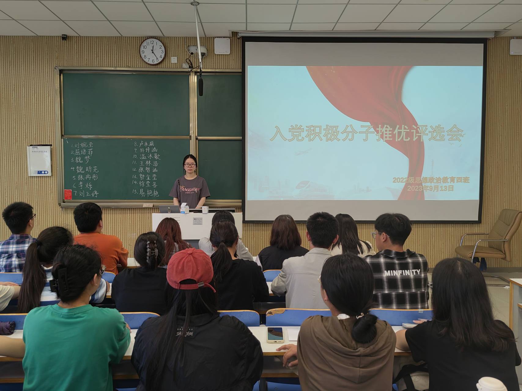 9月13日上午,金年会jinnianhuicom2022级思想政治教育四班在社科楼515教室召开“入党积极分子推优”主题班会。金年会官网2022级思想政治教育四班周钰婷老师和全体同学参与本次班会。班会由团支书牛志杰主持。