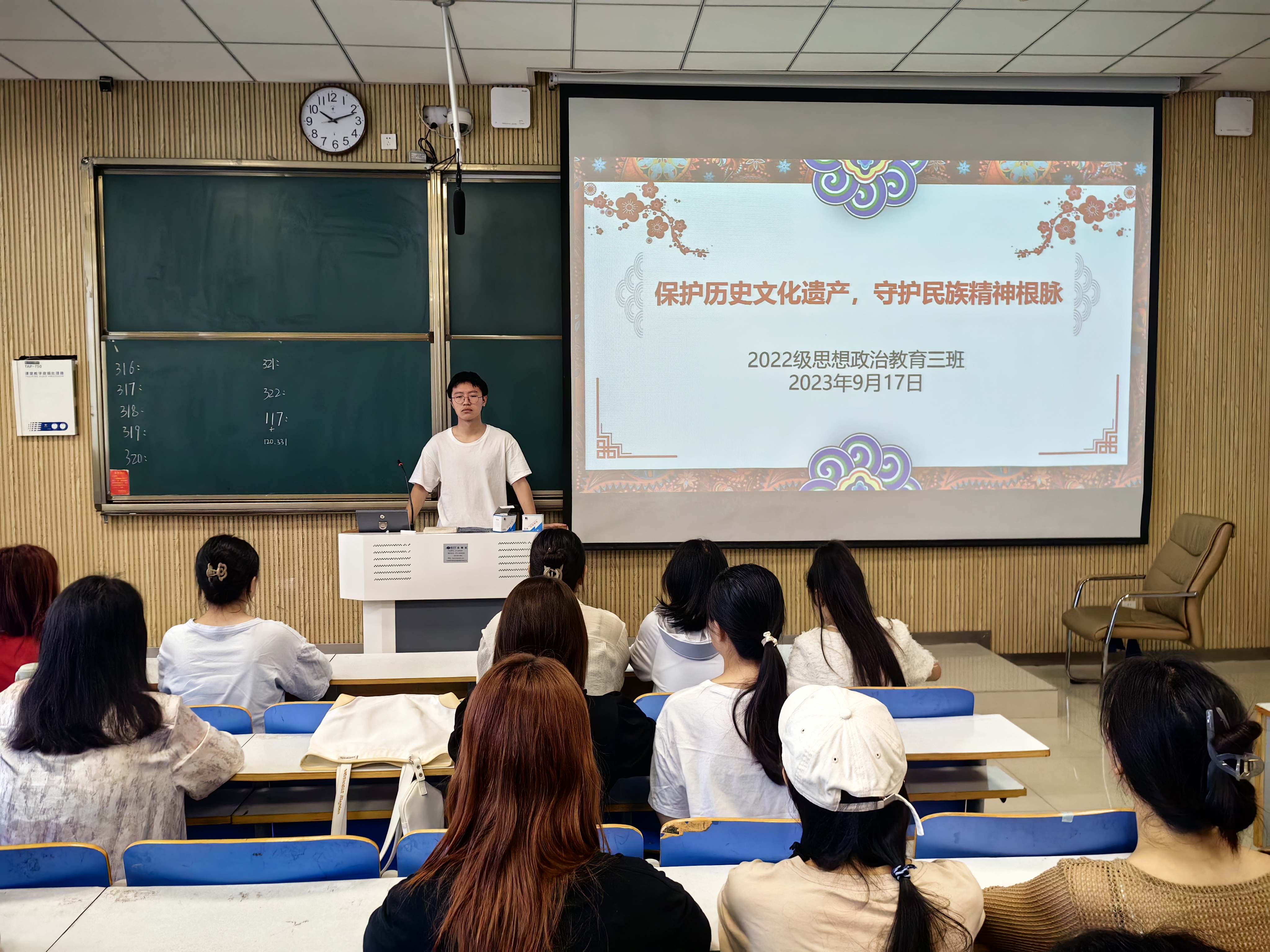 9月17日上午,金年会jinnianhuicom2022级思想政治教育三班在社科楼515教室召开“保护历史文化遗产,守护民族精神根脉”主题团课。金年会官网2022级思想政治教育三班全体成员共同参加此次团课。团课由团支书余浩洋主持。
