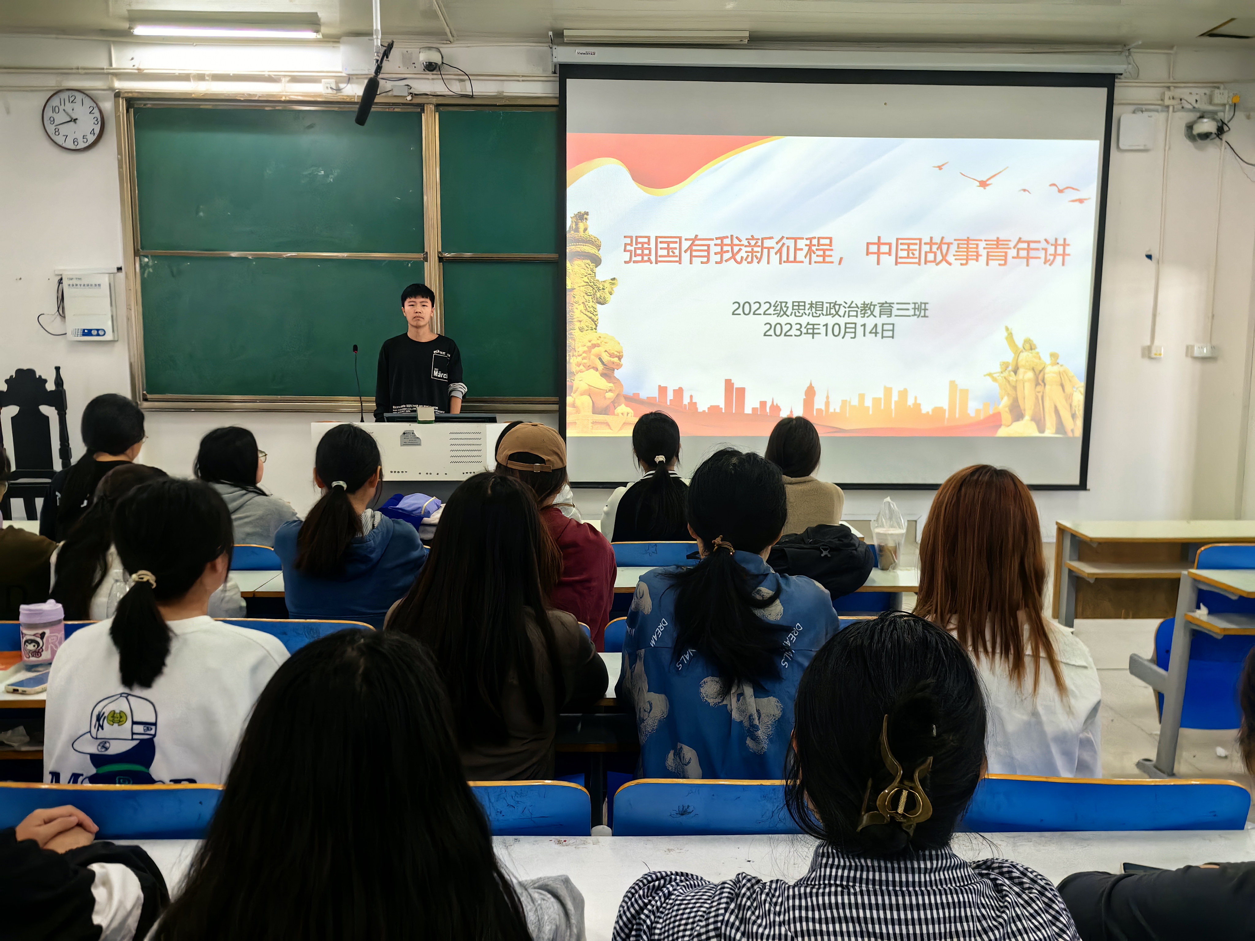 10月14日上午,金年会jinnianhuicom2022级思想政治教育三班在社科楼514教室召开“强国有我新征程,中国故事青年讲”主题团课。金年会官网2022级思想政治教育三班全体成员共同参加此次团课,团课由团支书余浩洋主持。