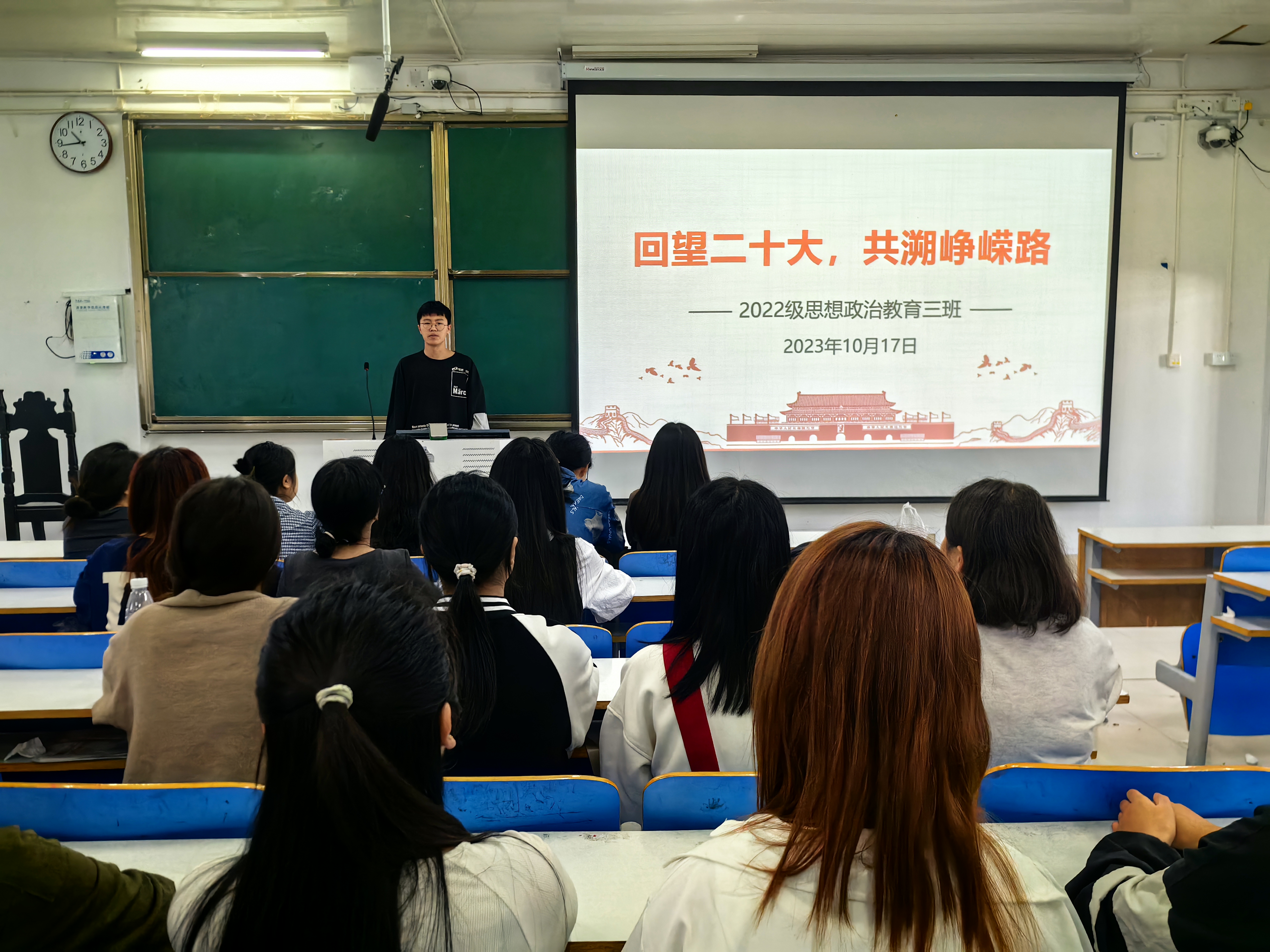10月17日下午,金年会jinnianhuicom2022级思想政治教育三班在社科楼515教室召开“回望二十大,共溯峥嵘路”主题团课。金年会官网2022级思想政治教育三班全体成员共同参加本次团课,团课由团支书余浩洋主持。