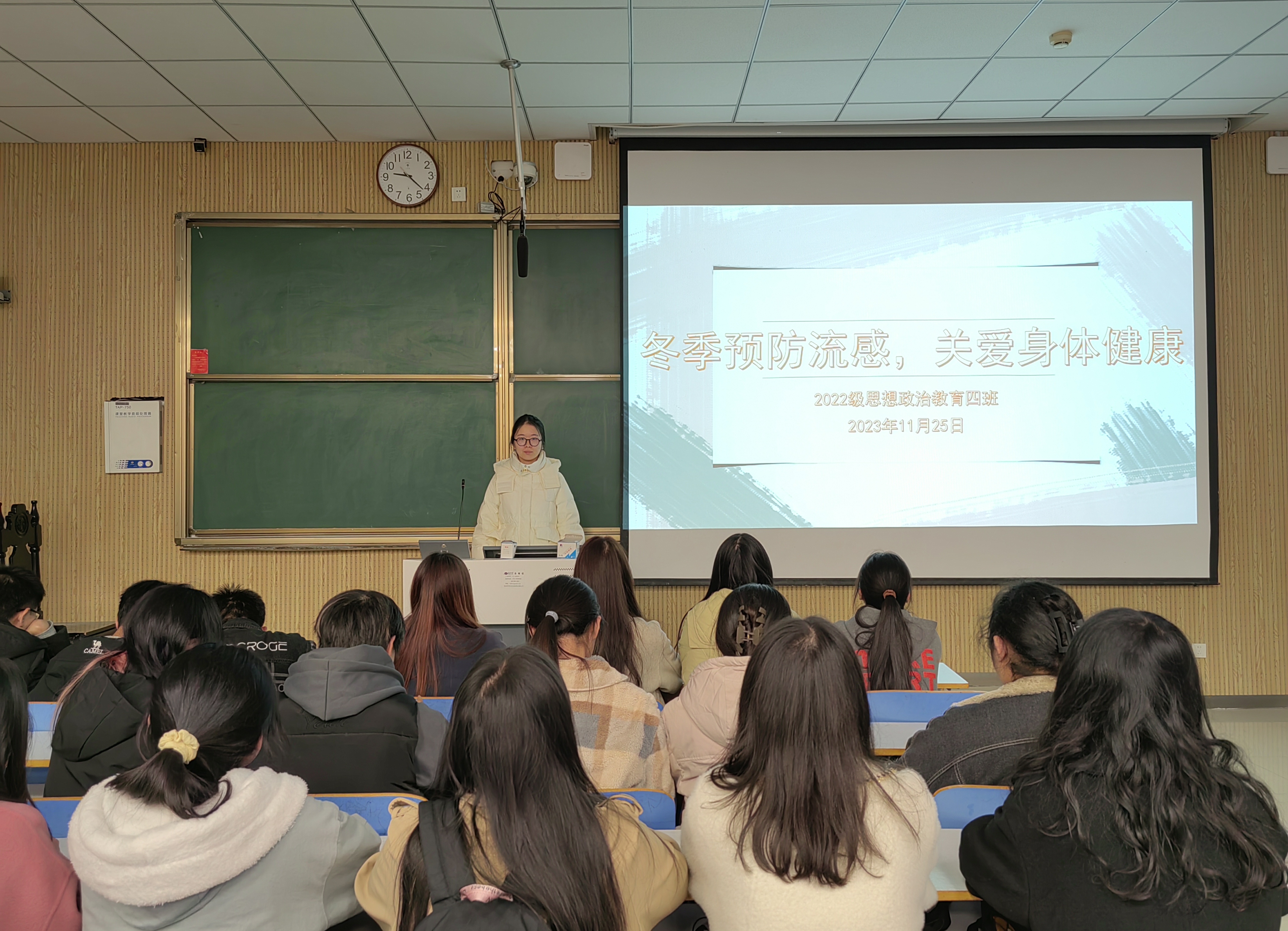 为普及冬季流感健康知识,提高同学们对于疾病的防治意识和能力,11月25日下午,金年会jinnianhuicom2022级思想政治教育四班在社科楼515教室召开“冬季预防流感,关爱身体健康”主题班会。金年会官网2022级思想政治教育四班全体同学参与本次班会。本次班会由班长牛志杰主持。