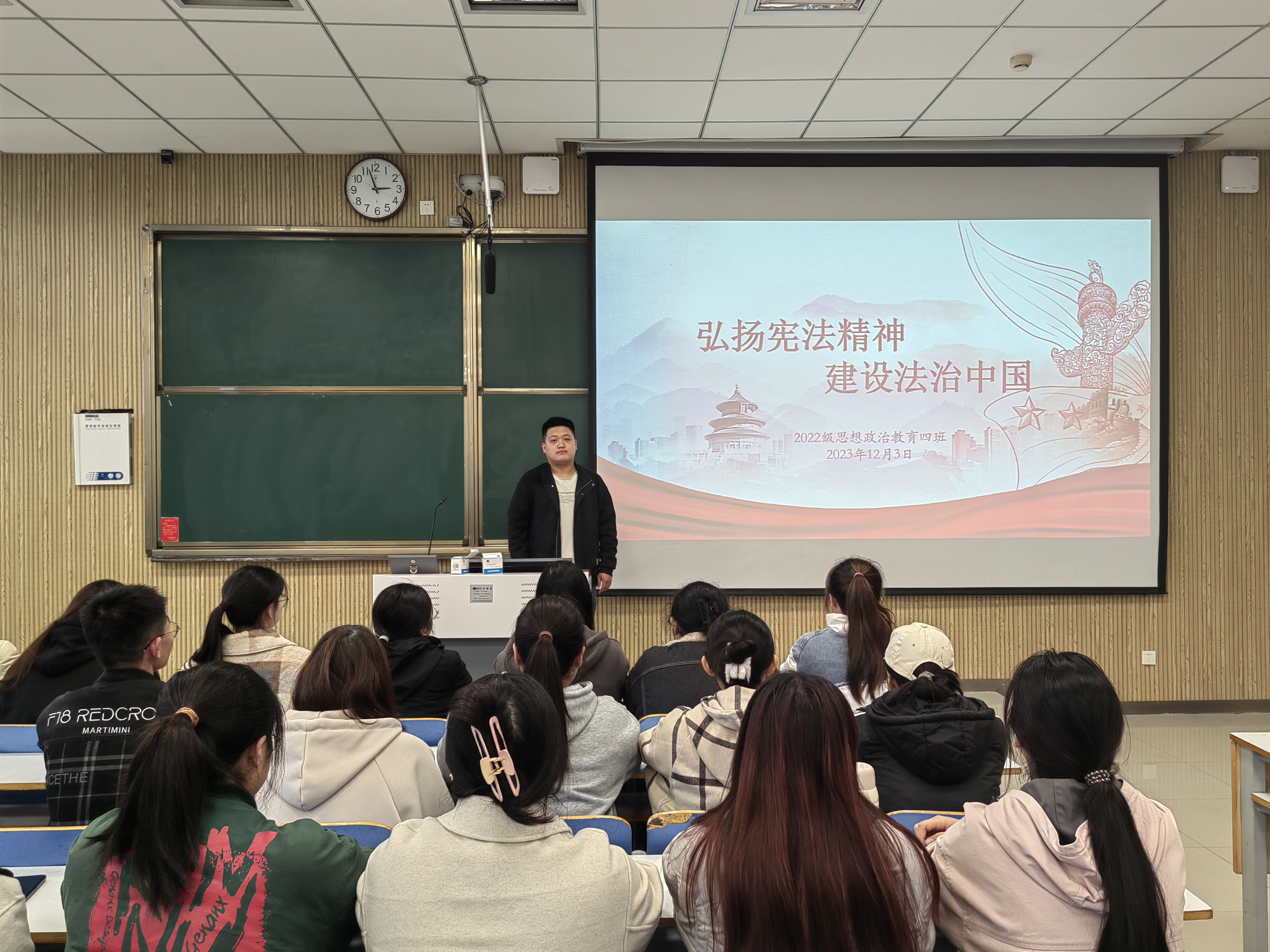 12月3日上午,金年会jinnianhuicom2022级思想政治教育四班在社科楼515教室召开“弘扬宪法精神,建设法治中国”主题班会。金年会官网2022级思想政治教育四班全体同学参与本次班会。本次团课由副班长宋奕铭主持。