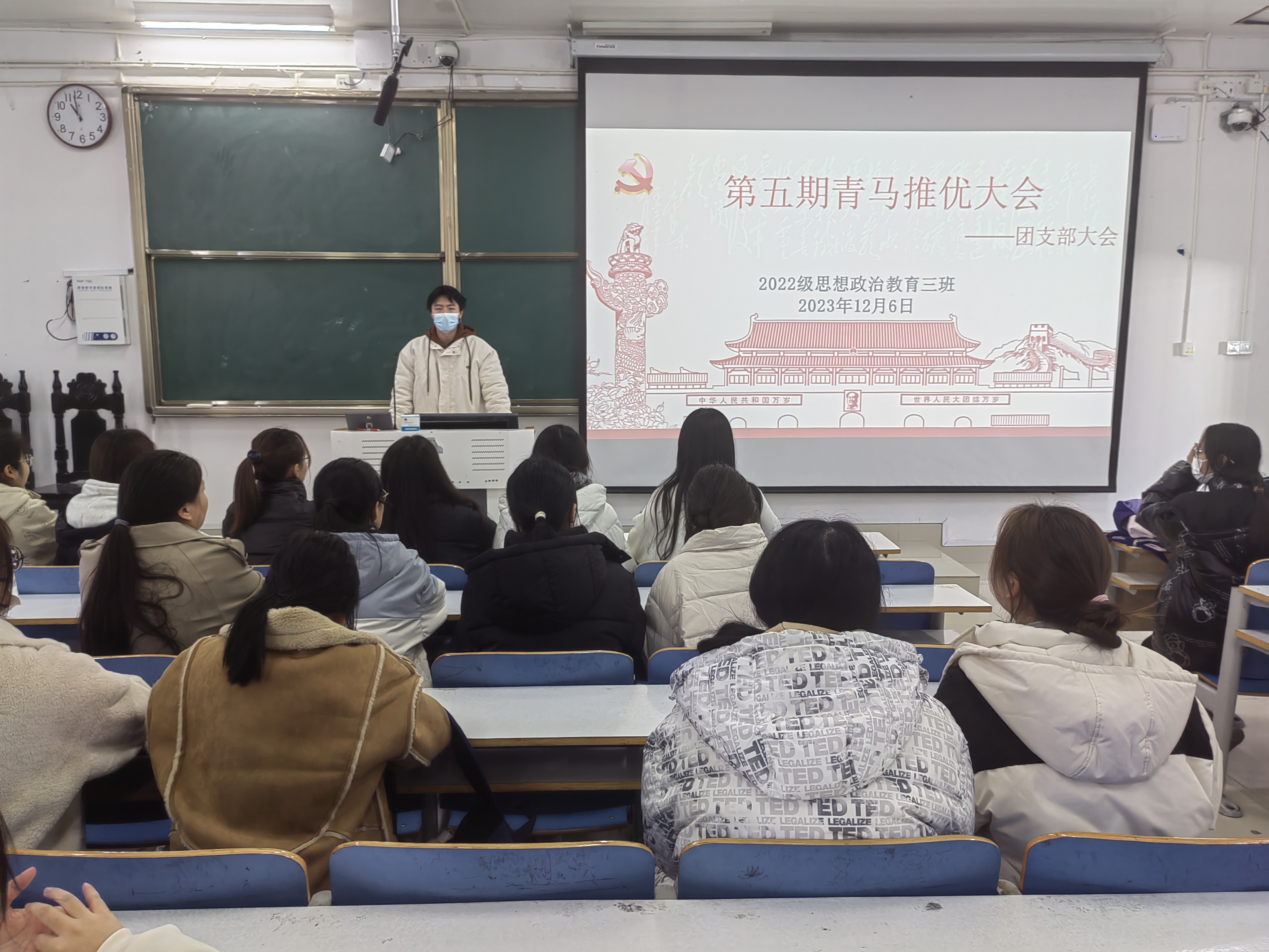 12月6日上午,金年会jinnianhuicom2022级思想政治教育三班在514教室开展第五期青马推优大会。金年会官网2022级思想政治教育三班全体团员共同参与此次推优大会。大会由团支书余浩洋主持。