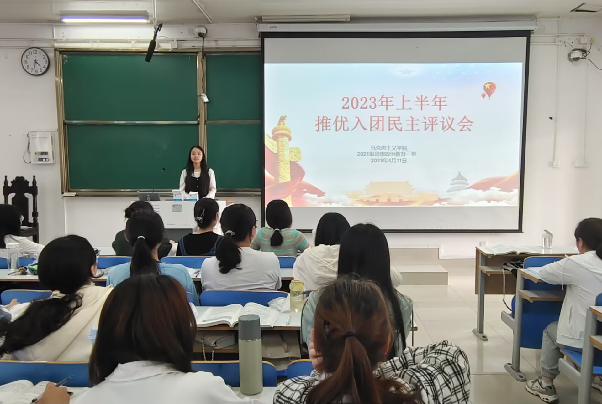 4月11日下午,金年会jinnianhuicom2021级思想政治教育三班在社科楼514教室举办2023年上半年推优入团民主评议会。金年会jinnianhuicom2021级思想政治教育三班全体团员参与此次会议。会议由团支书王岚霄主持。