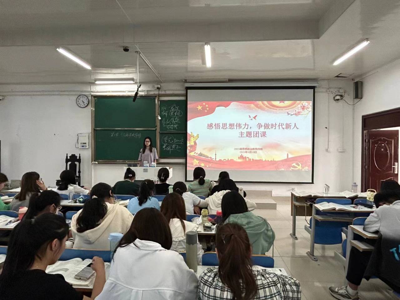 4月19日下午,金年会jinnianhuicom2021级思想政治教育四班在社科楼514教室开展“感悟思想伟力,争做时代新人”主题团课。2021级思想政治教育四班全体团员参加本次团课。团课由团支书刘珂含主持。