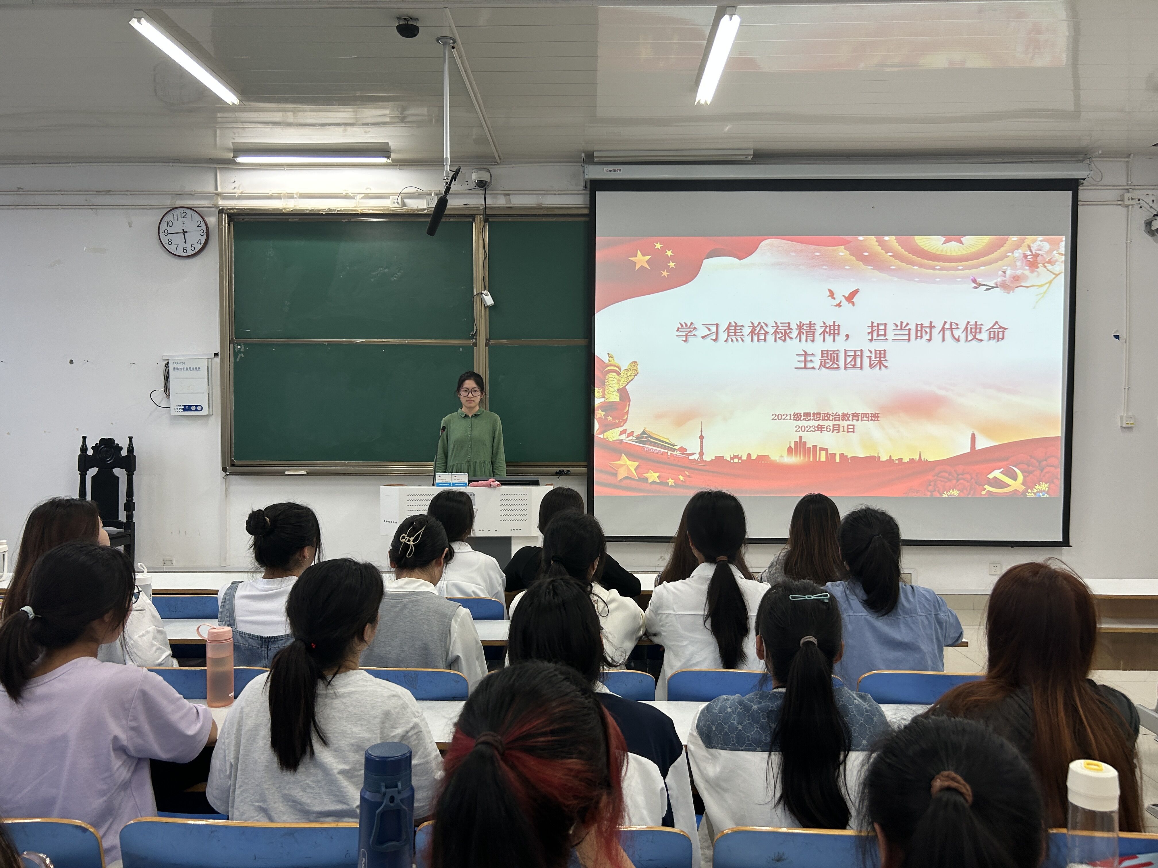 6月1日下午,金年会jinnianhuicom2021级思想政治教育四班在社科楼514教室开展“学习焦裕禄精神,担当时代使命”主题团课。2021级思想政治教育四班全体团员参加本次团课。团课由团支书刘珂含主持。
