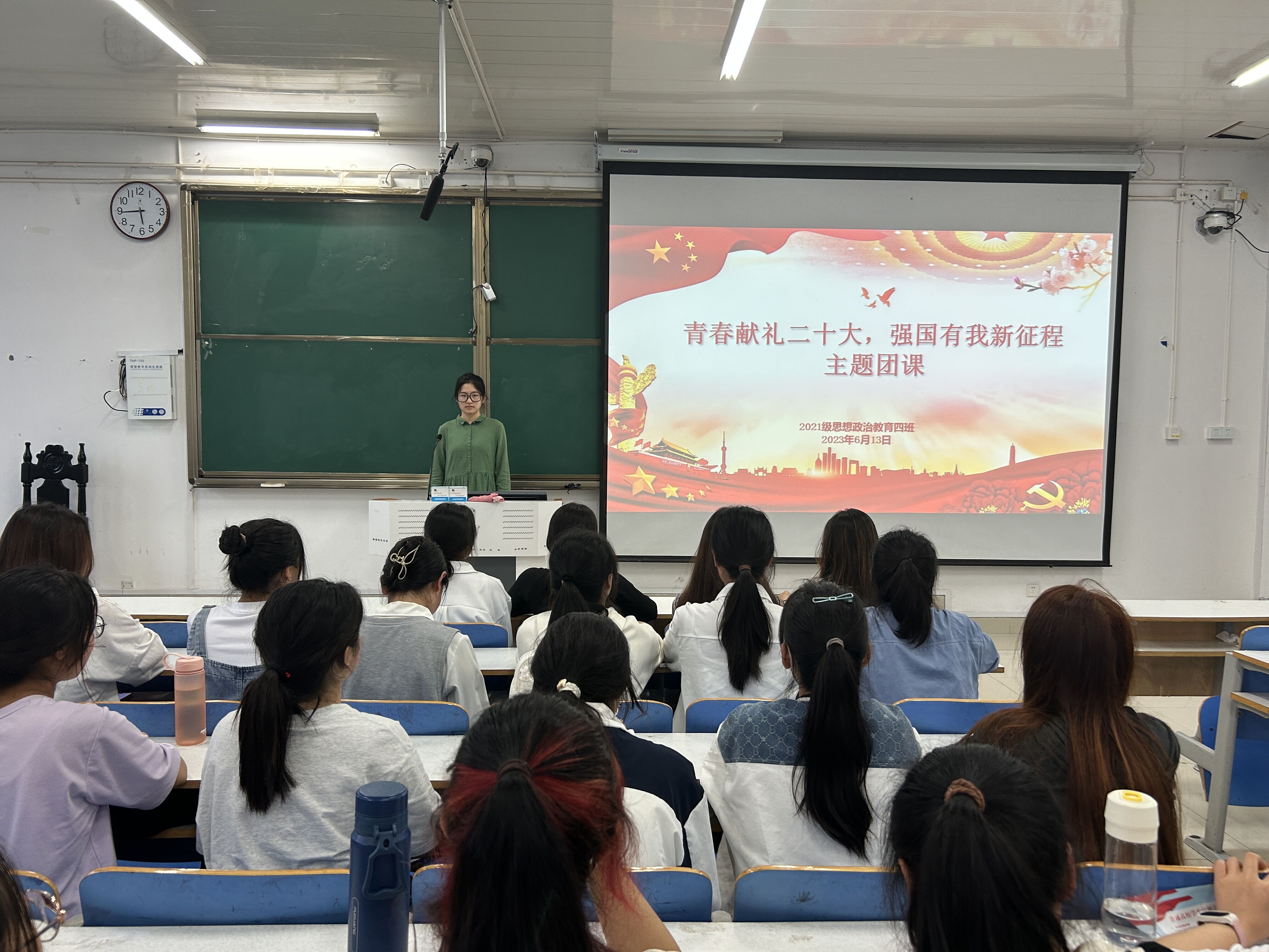 为深入贯彻学习党的二十大精神,6月13日下午,金年会jinnianhuicom2021级思想政治教育四班在社科楼514教室开展“青春献礼二十大,强国有我新征程”主题团课。2021级思想政治教育四班全体团员参加本次团课。团课由团支书刘珂含主持。