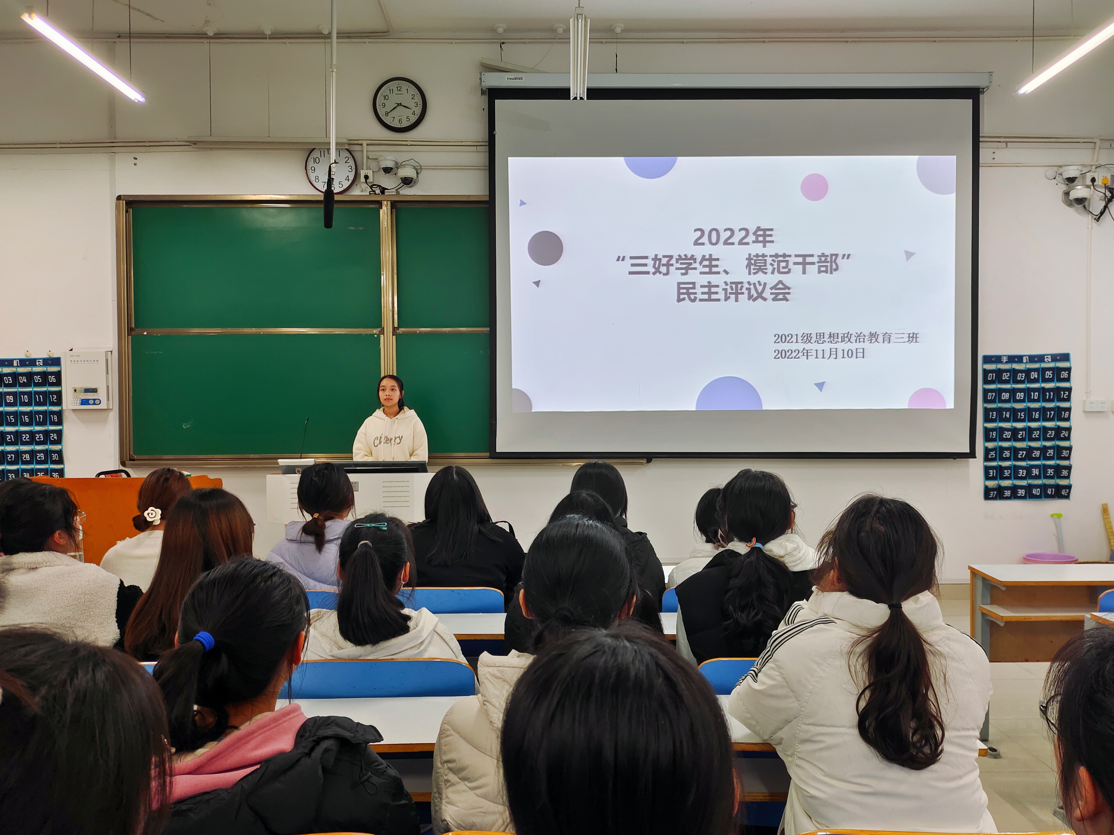 11月10日下午,金年会jinnianhuicom2021级思想政治教育三班在社科楼514召开2022年“三好学生、模范干部”民主评议会。金年会jinnianhuicom2021级思想政治教育三班全体成员参与此次会议。会议由团支书王岚霄主持,王岚霄任检票员,陈笑宇任记录员。