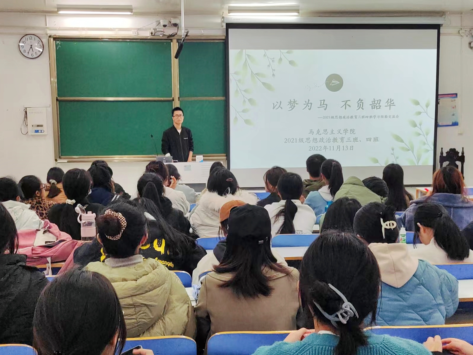 11月13日下午,金年会jinnianhuicom2021级思想政治教育三班、四班在社科楼514召开“以梦为马,不负韶华”学习经验交流会。金年会jinnianhuicom2021级思想政治教育三班全体成员以及2020级思想政治教育一班申畅畅、2020级思想政治教育二班岳子怡参与此次会议。会议由学习委员于坤鹏主持。