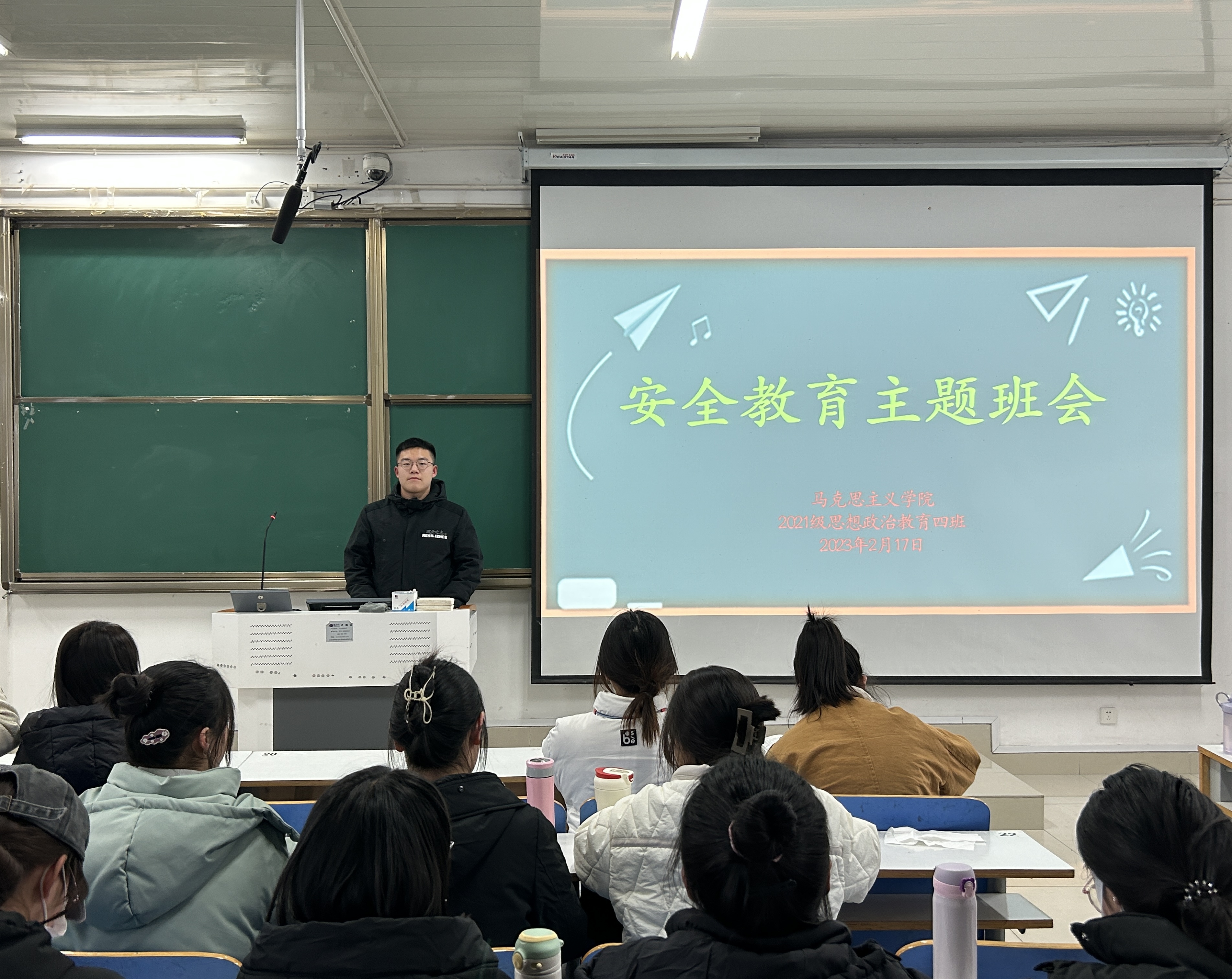 2月17日下午,金年会jinnianhuicom2021级思想政治教育四班在社科楼514教室开展安全教育主题班会。2021级思想政治教育四班全体同学共同参会。班会由副班长常康哲主持。