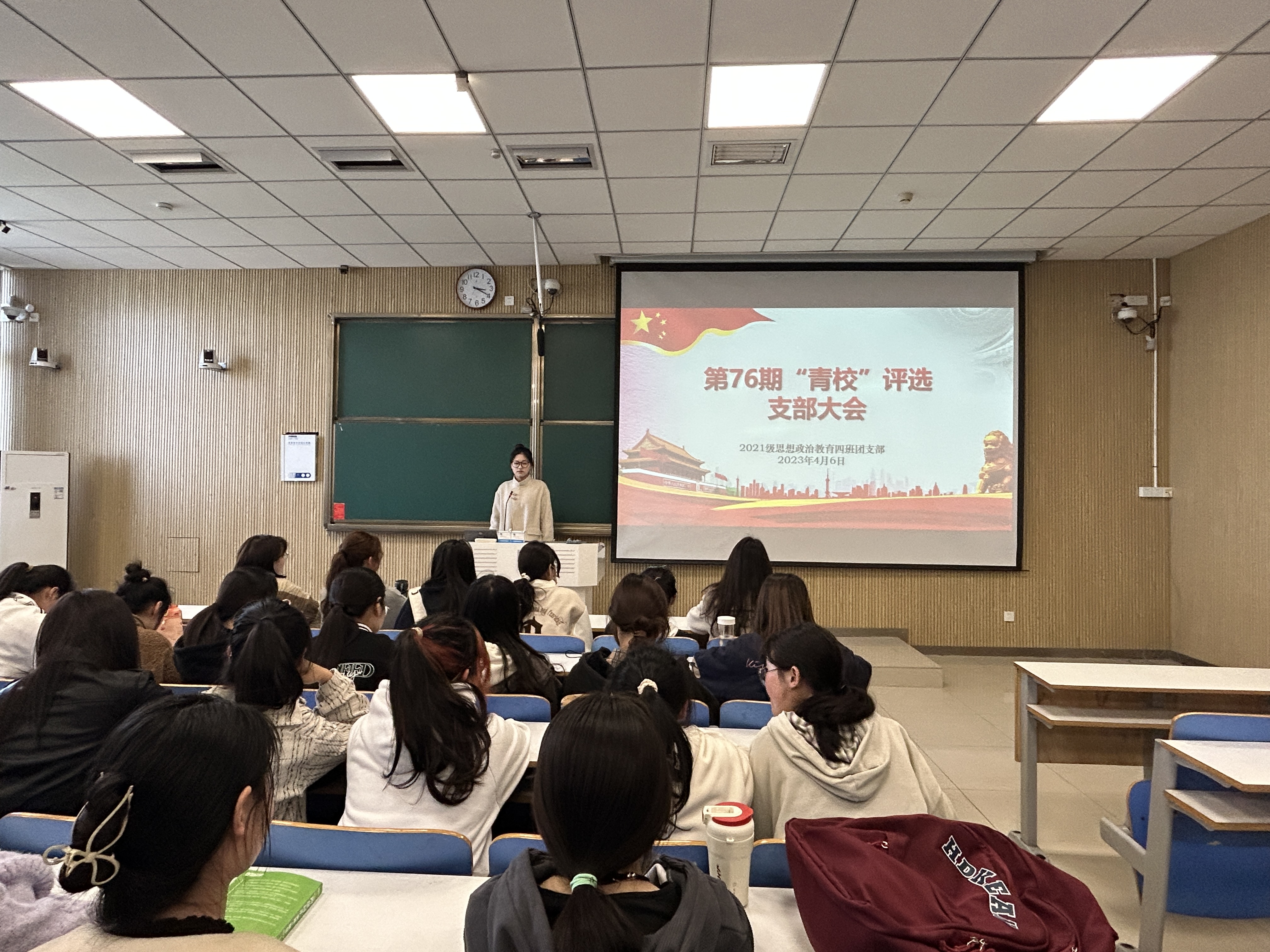 4月6日下午,金年会jinnianhuicom2021级思想政治教育四班在社科楼514教室开展第76期“青校”评选团支部大会。金年会jinnianhuicom2021级思想政治教育四班全体团员共同参与本次会议。会议由团支书刘珂含主持。