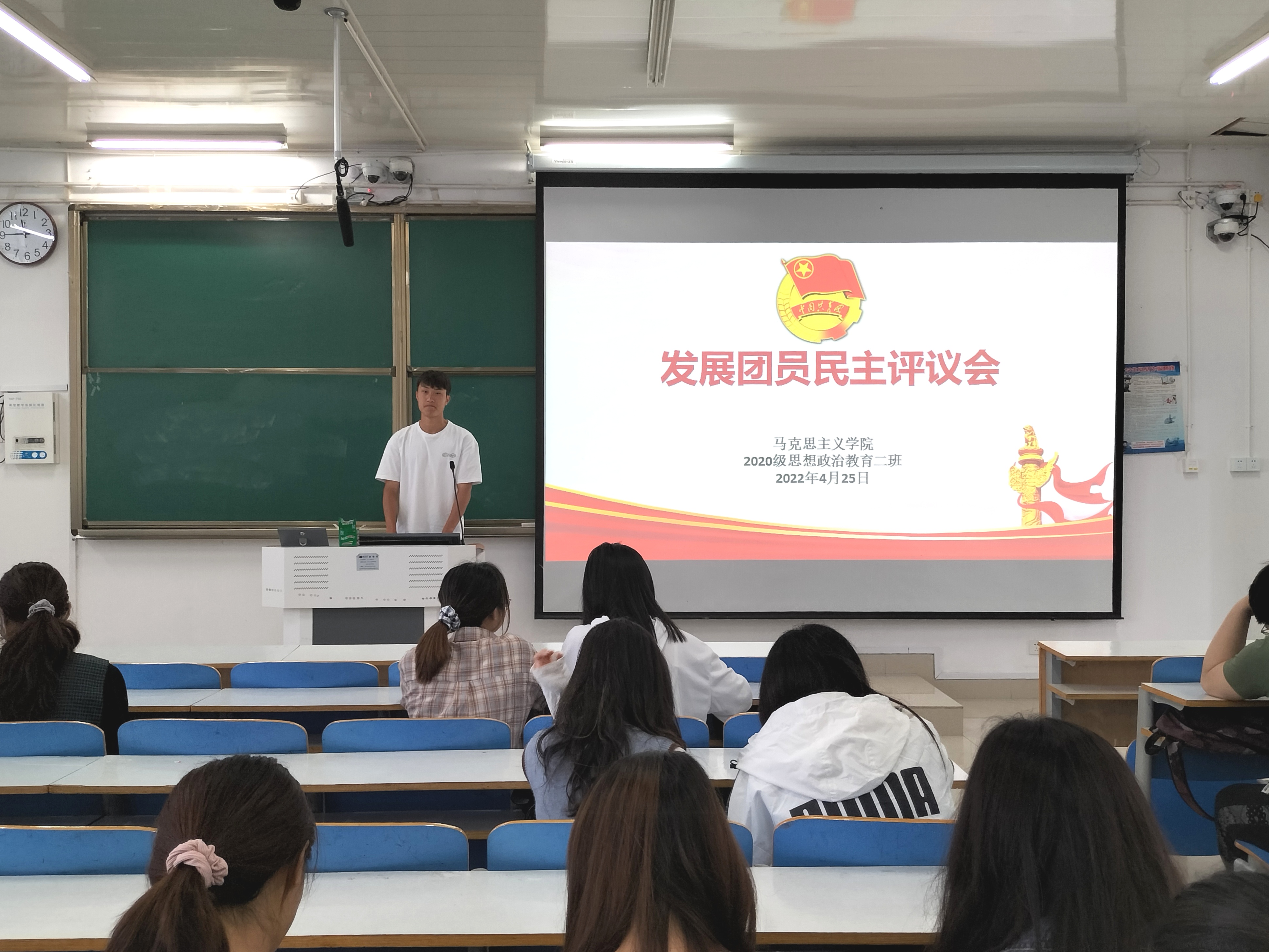为进一步发展壮大团员队伍,为团支部注入新鲜血液,4月25日上午,金年会jinnianhuicom2020级思想政治教育二班在社科楼514教室召开2022年上半年团员计划发展对象民主评议会。2020级思想政治教育二班全体团员共同参加本次会议。会议由团支书陈宇航主持。
