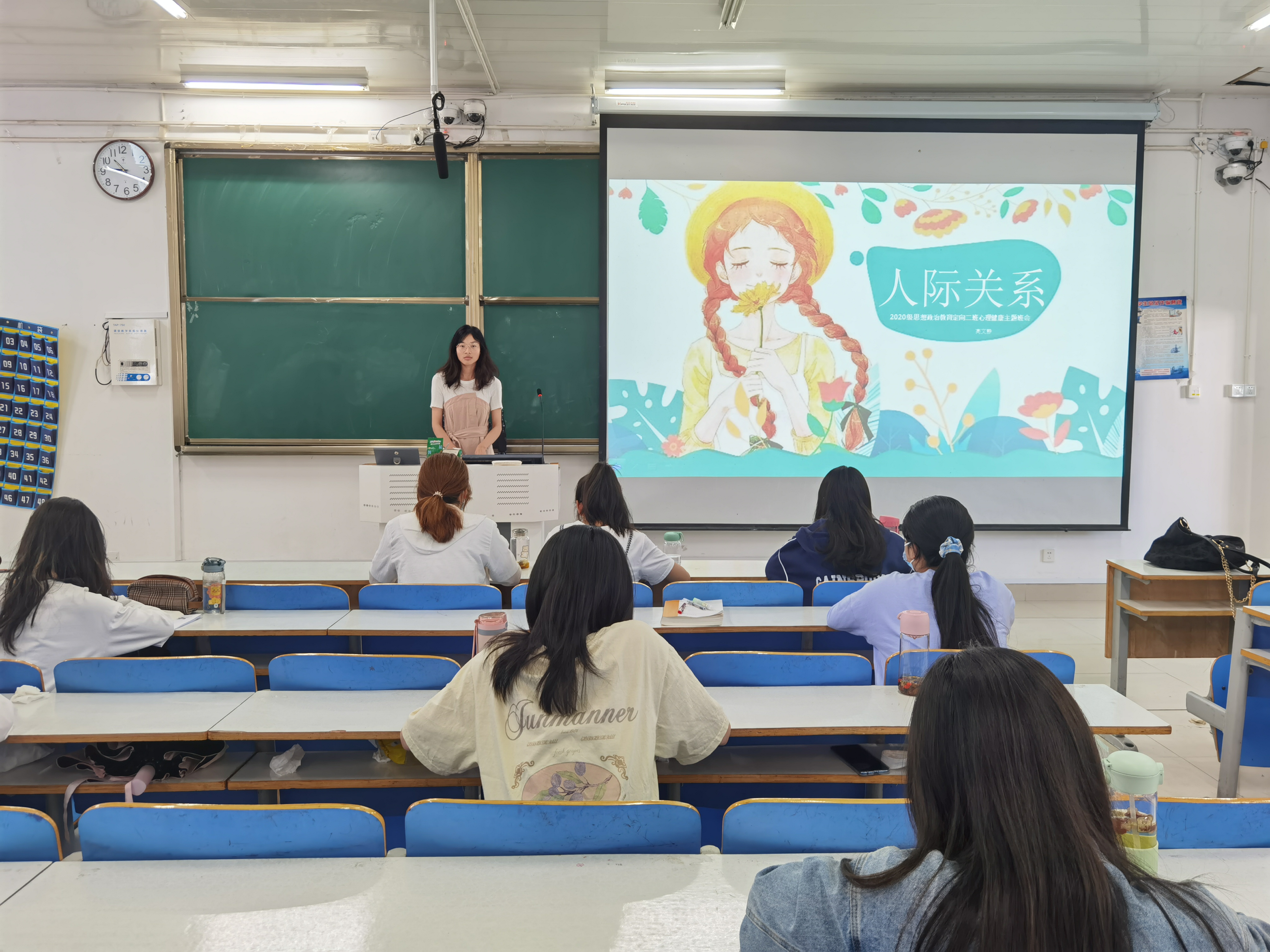 5月17日上午,金年会jinnianhuicom2020级思想政治教育二班、定向二班在社科楼514教室开展心理健康教育主题班会。2020级思想政治教育二班、定向二班全体同学共同参会。会议由心理委员高文静、刘晶晶主持。