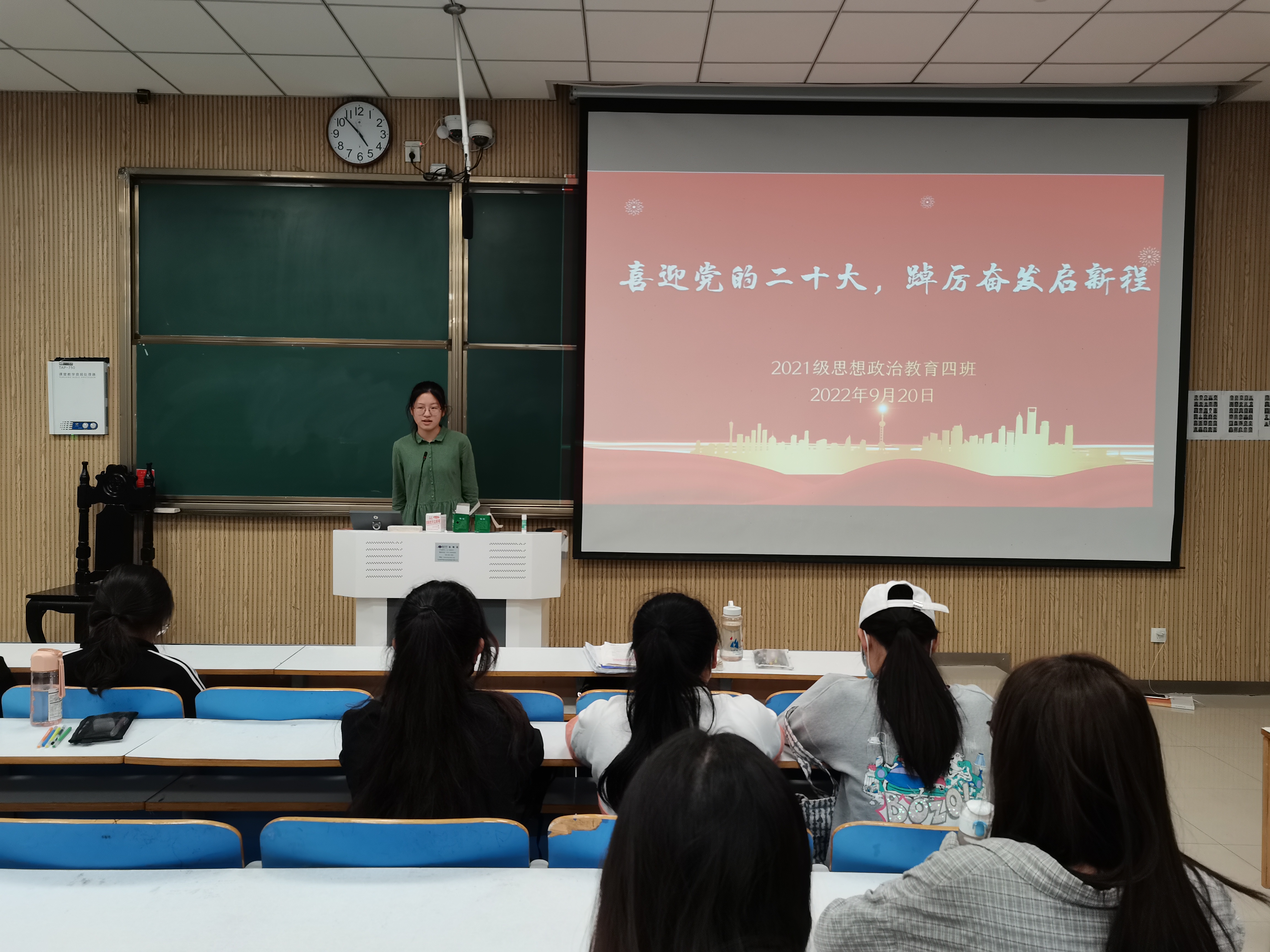 9月20日下午,金年会jinnianhuicom2021级思想政治教育四班在社科楼516教室召开“喜迎党的二十大,踔厉奋发启新程”主题团课。2021级思想政治教育四班全体同学参加本次团课。团课由团支书刘珂含主持。