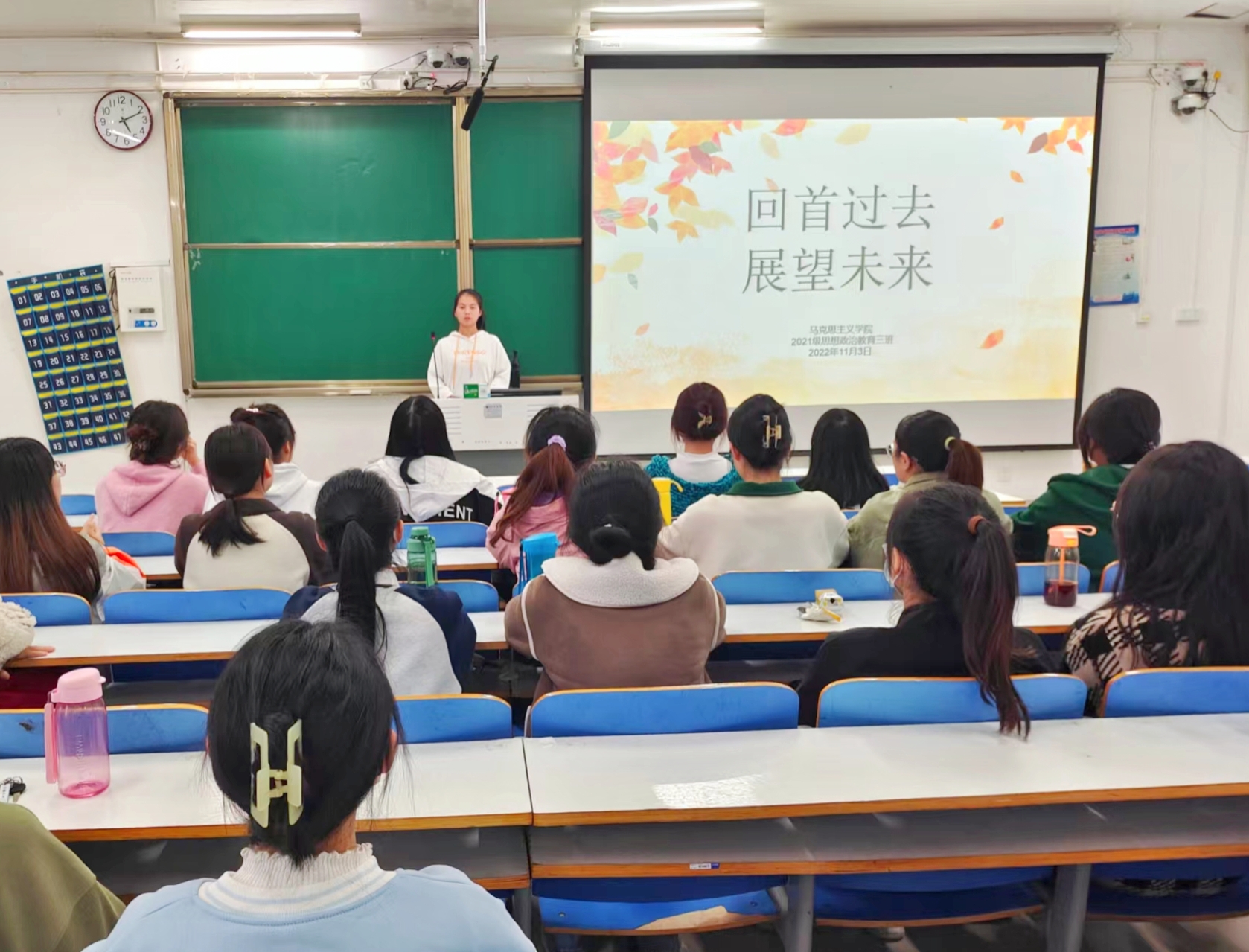 11月3日下午,金年会jinnianhuicom2021级思想政治教育三班在社科楼514召开“回首过去,展望未来”主题班会。金年会jinnianhuicom2021级思想政治教育三班全体成员以及辅导员高小佳老师参与此次会议。会议由班长易从漫主持。
