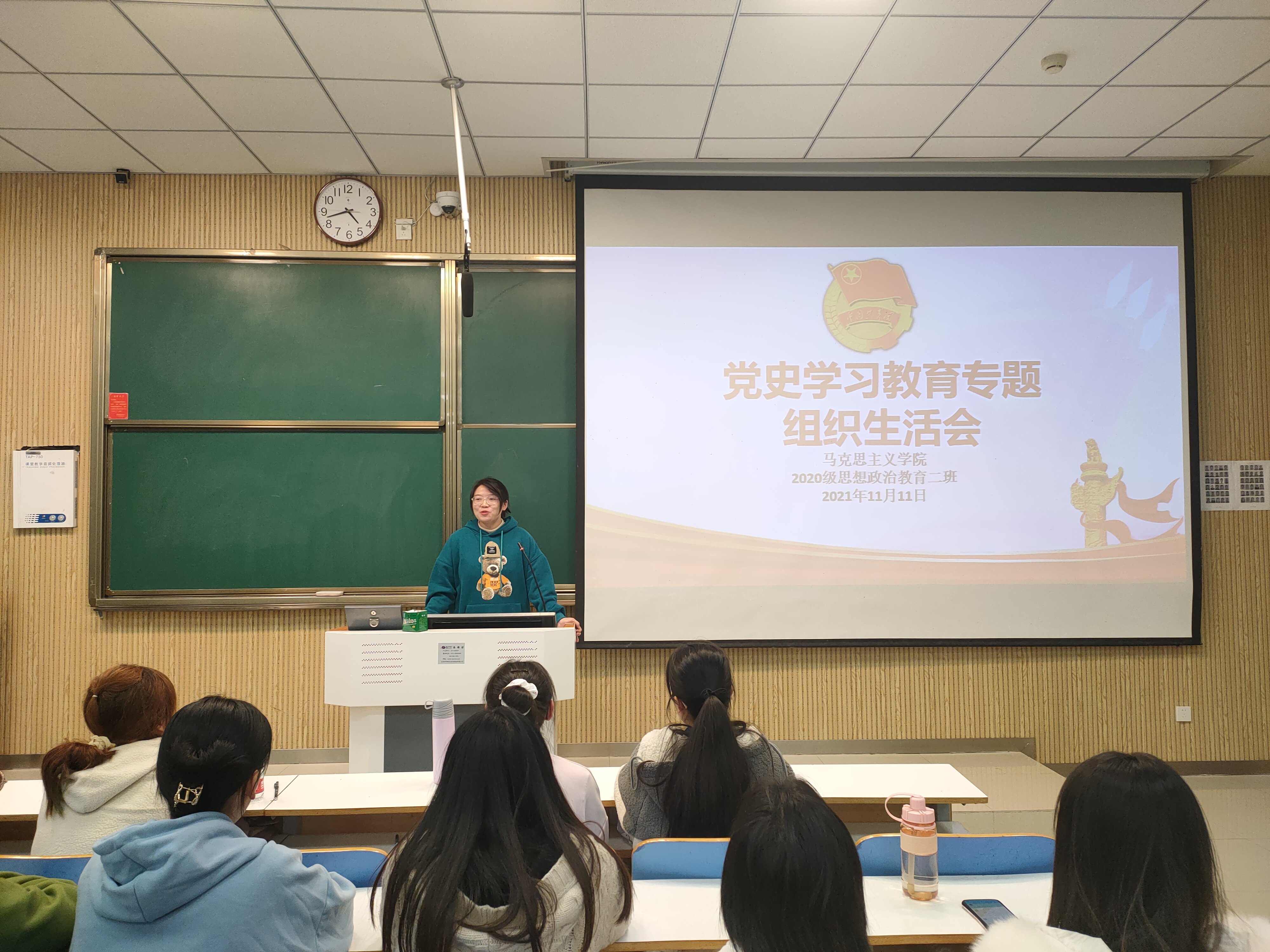 11月11日下午,金年会jinnianhuicom2020级思想政治教育二班、定向二班在社科楼515教室召开党史学习教育专题组织生活会。辅导员陶青青以及2020级思想政治教育二班、定向二班全体团员共同参与本次会议。会议由团支书李晨曦主持。
