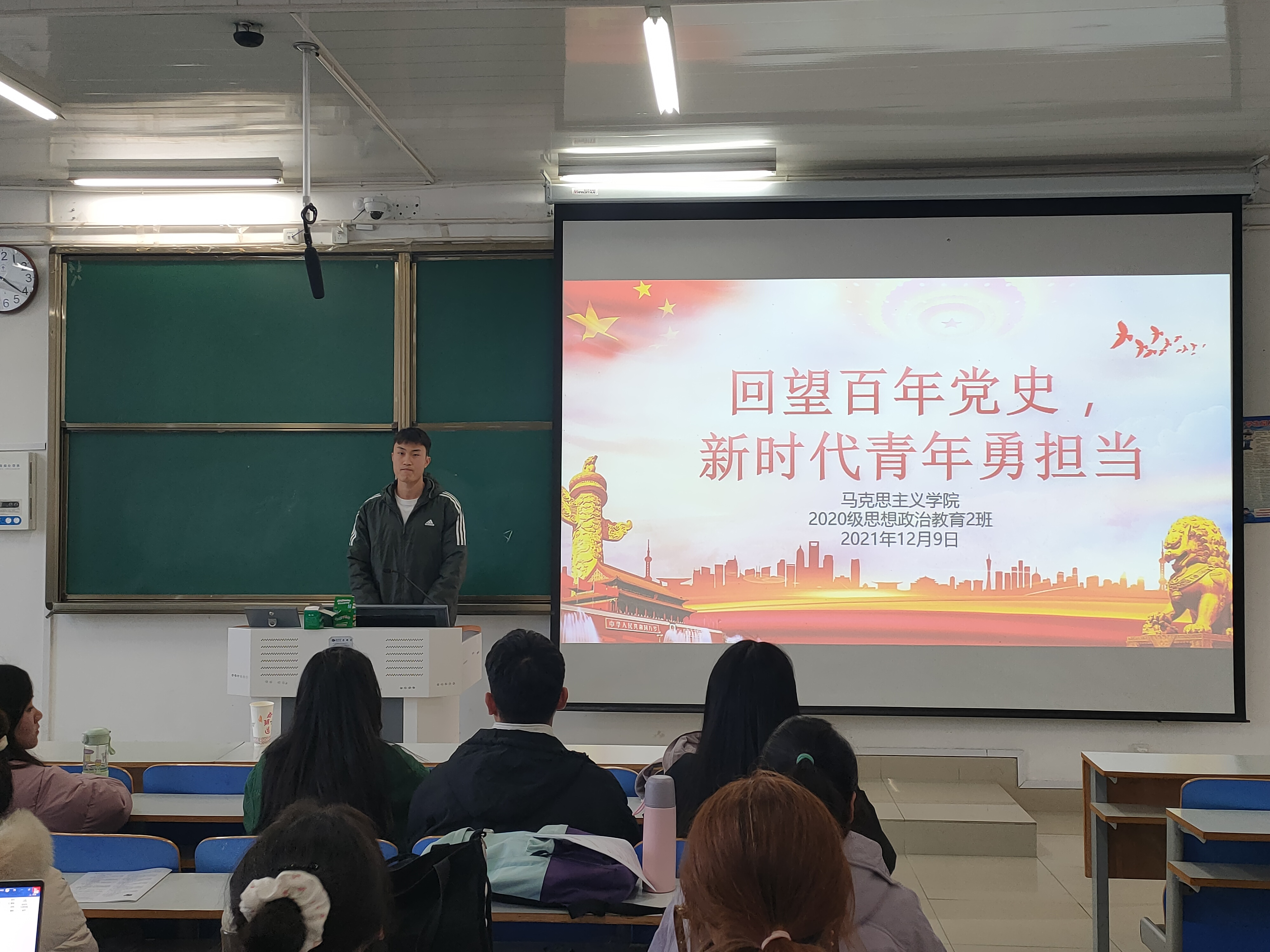 12月9日下午,金年会jinnianhuicom2020级思想政治教育二班、定向二班在社科楼514教室开展“回望百年党史,新时代青年勇担当”主题团课。2020级思想政治教育二班、定向二班全体团员共同参与本次团课。团课由团支书陈宇航讲授。