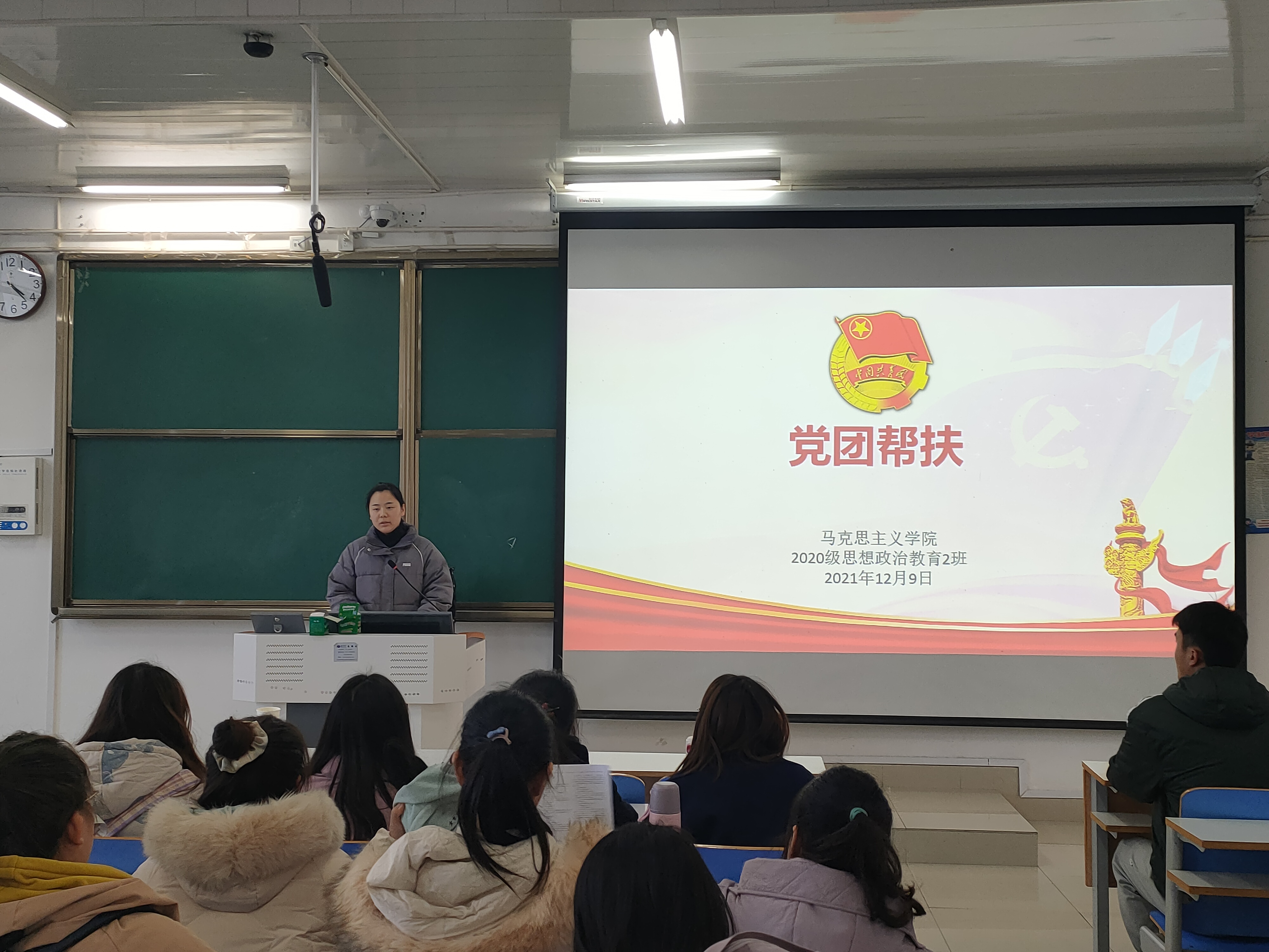 12月9日下午,金年会jinnianhuicom2020级思想政治教育二班在社科楼514教室开展党团帮扶活动,金年会官网正式党员耿晗、预备党员贾雨晴以及2020级思想政治教育二班全体成员共同参与本次活动。活动由团支书陈宇航主持。