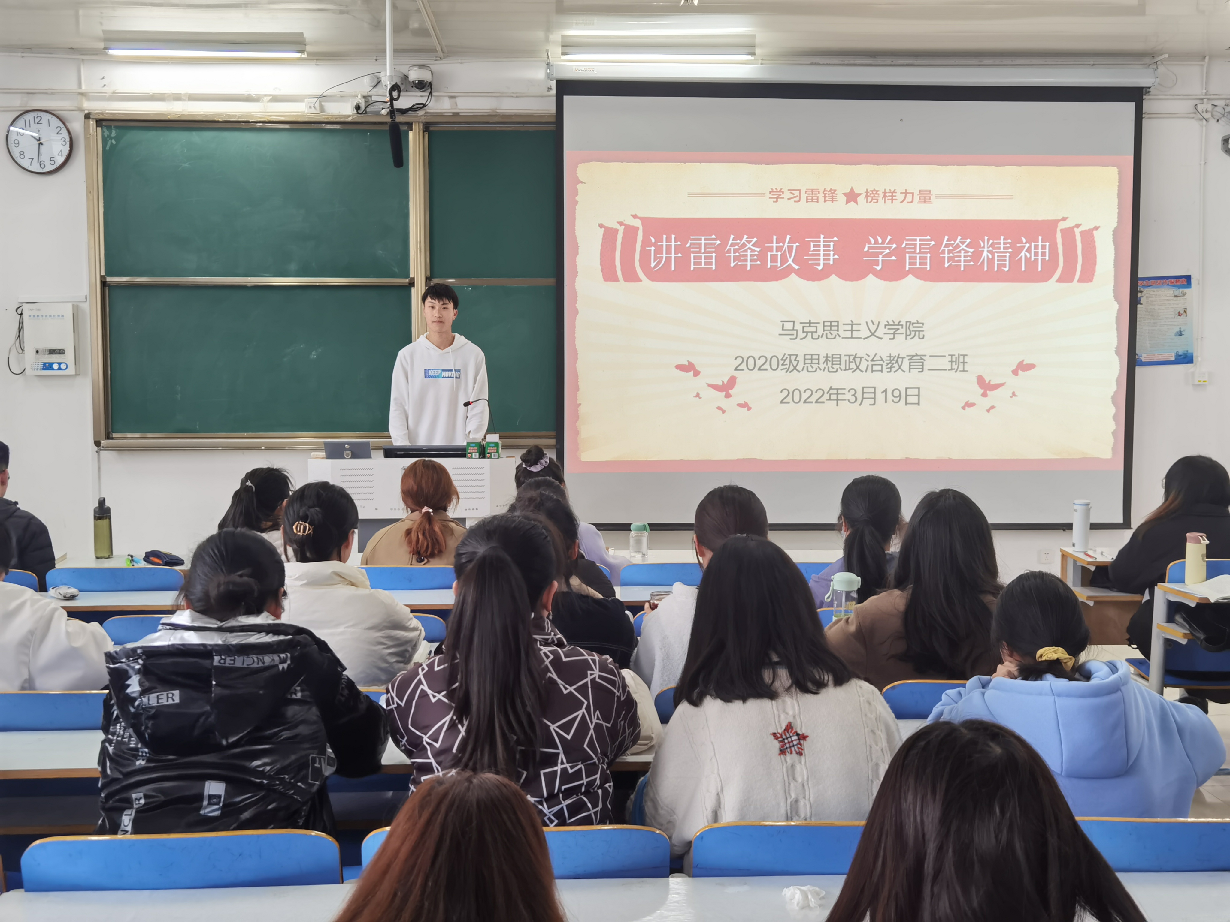 为了引导广大青年学生继承优良传统、弘扬志愿服务精神,3月19日上午,金年会jinnianhuicom2020级思想政治教育二班、定向二班在社科楼514教室开展“讲雷锋故事,学雷锋精神”主题团课。2020级思想政治教育二班、定向二班全体团员共同参与本次团课。团课由团支书陈宇航主持。