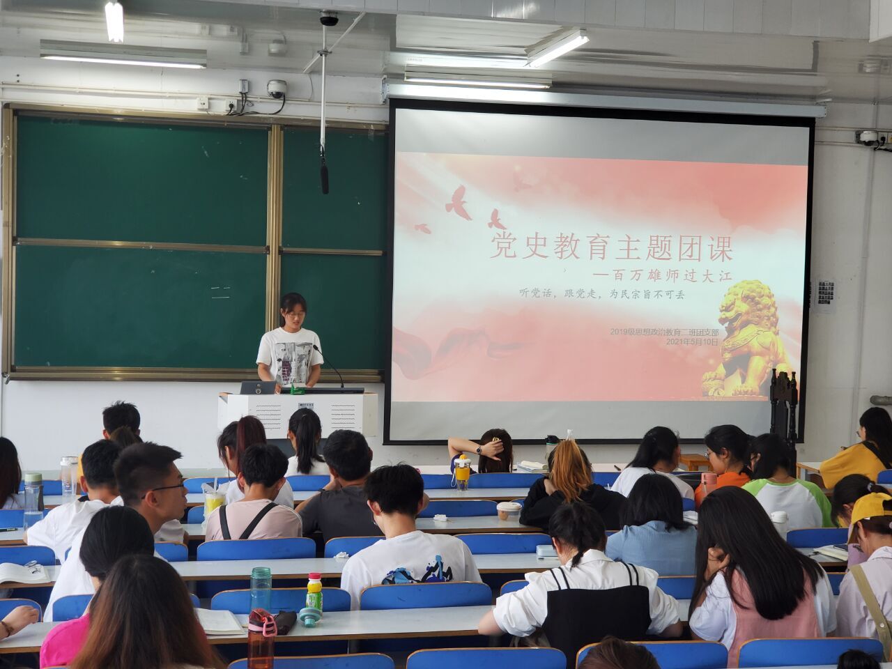 为提高学生思想站位,强化责任担当,5月10日上午,金年会官网2019级思想政治教育二班在社科楼516教室召开“百万雄师过大江”党史教育主题团课。2019级思想政治教育二班全体成员共同参会。会议由团支书孙雅娴主持。