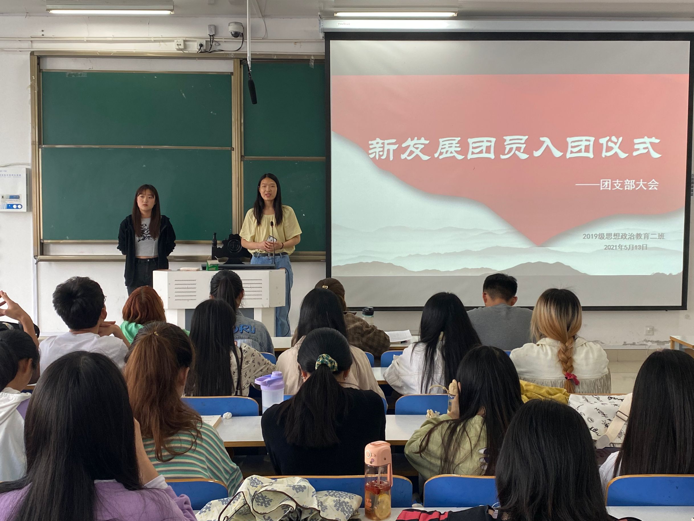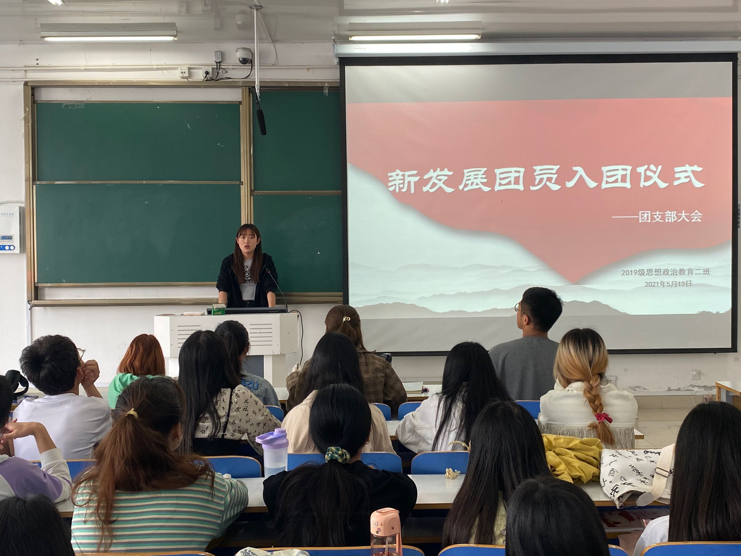 5月13日上午,金年会jinnianhuicom2019级思想政治教育二班在社科楼516教室召开“新发展团员入团仪式”团支部大会。2019级思想政治教育二班全体同学参加了本次大会,大会由团支书孙雅娴主持。