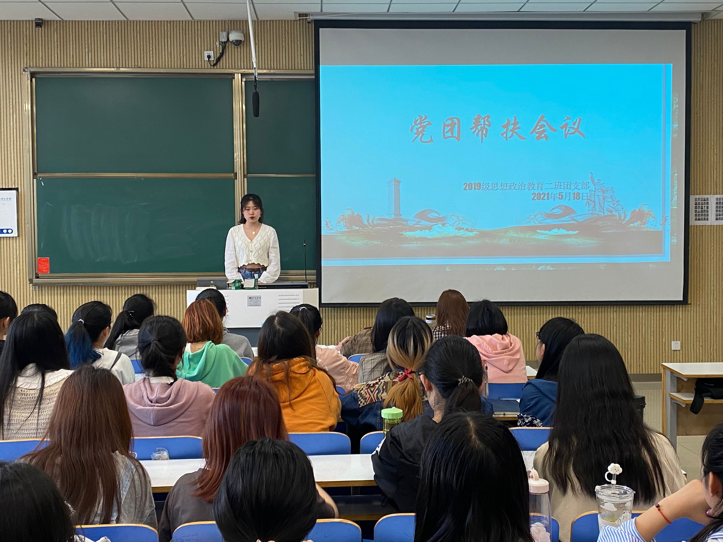 5月18日上午,金年会jinnianhuicom2019级思想政治教育二班于社科楼515教室顺利开展党团帮扶活动。金年会官网预备党员姜雨杭及我班全体成员共同参加了本次活动。活动由团支书孙雅娴主持。