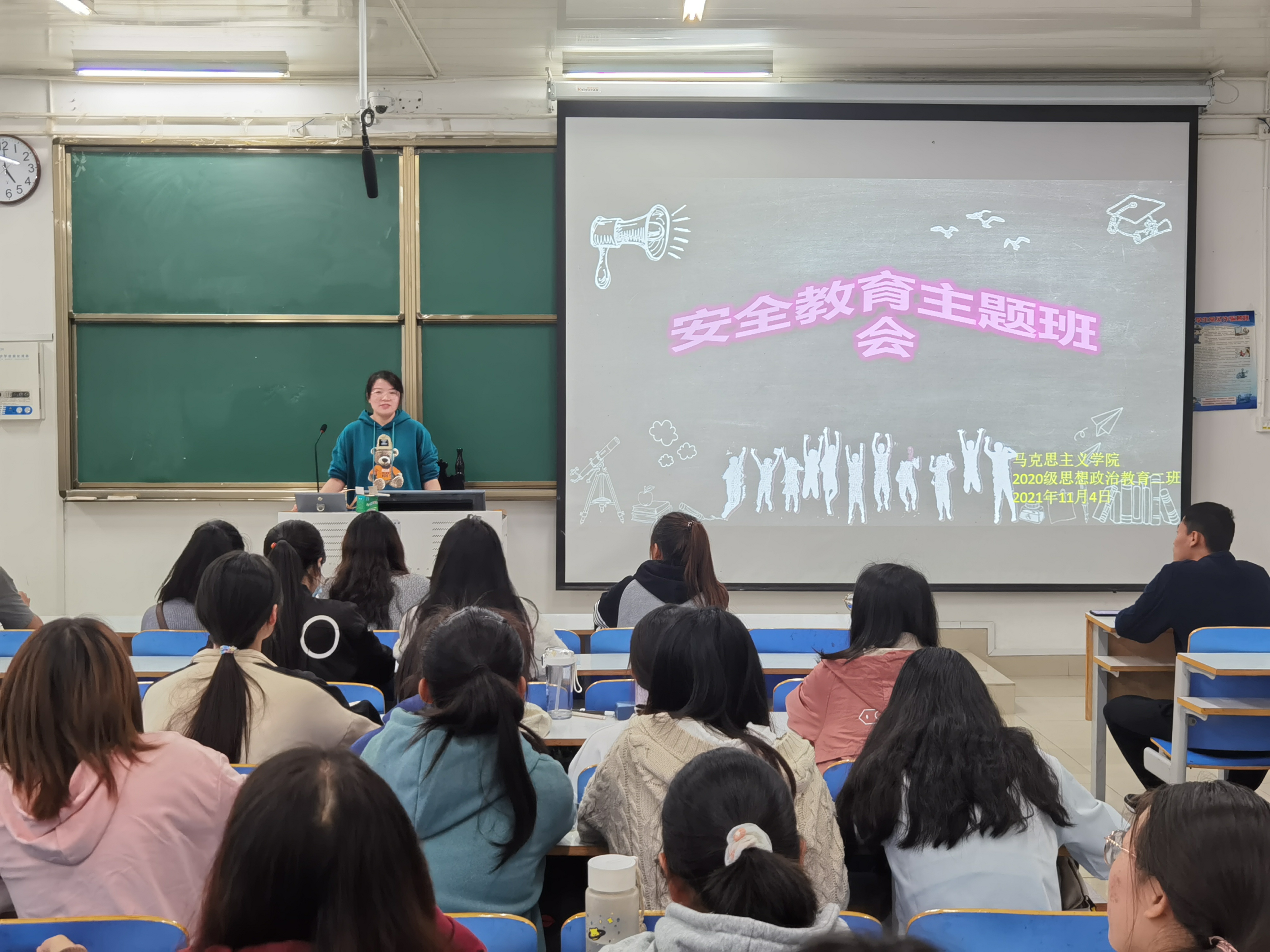 为积极落实金年会官网关于加强学生安全教育的通知要求,进一步增强我班学生的安全意识,11月4日下午,金年会jinnianhuicom2020级思想政治教育二班、定向二班在社科楼514教室召开安全教育主题班会。二班、定向二班全体同学参与本次班会。班主任陶青青出席会议并讲话。