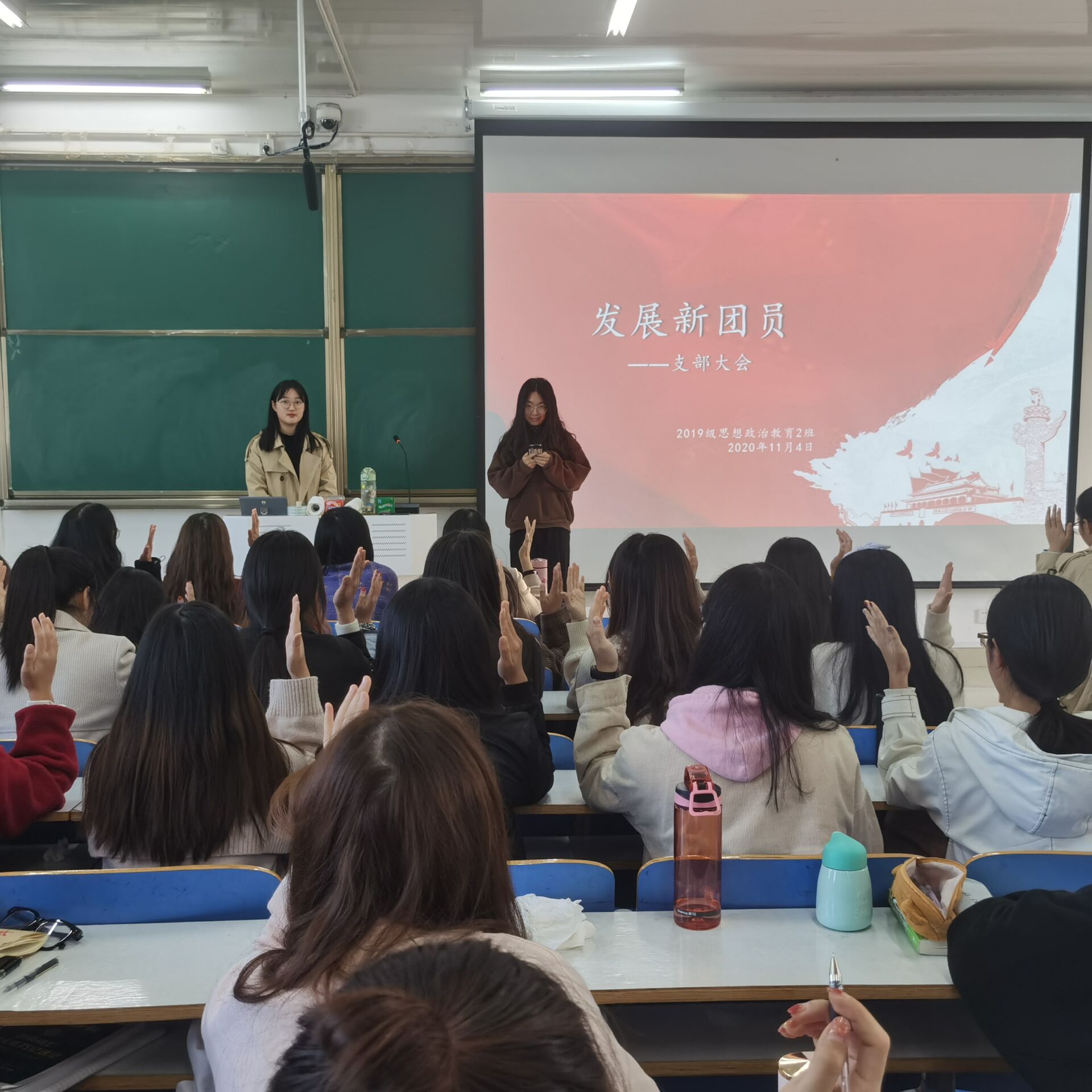 11月4日下午,金年会jinnianhuicom2019级思想政治教育二班在社科楼514教室召开“发展新团员”主题会议。2019级思想政治教育二班全体成员共同参会。会议由团支书孙雅娴主持。