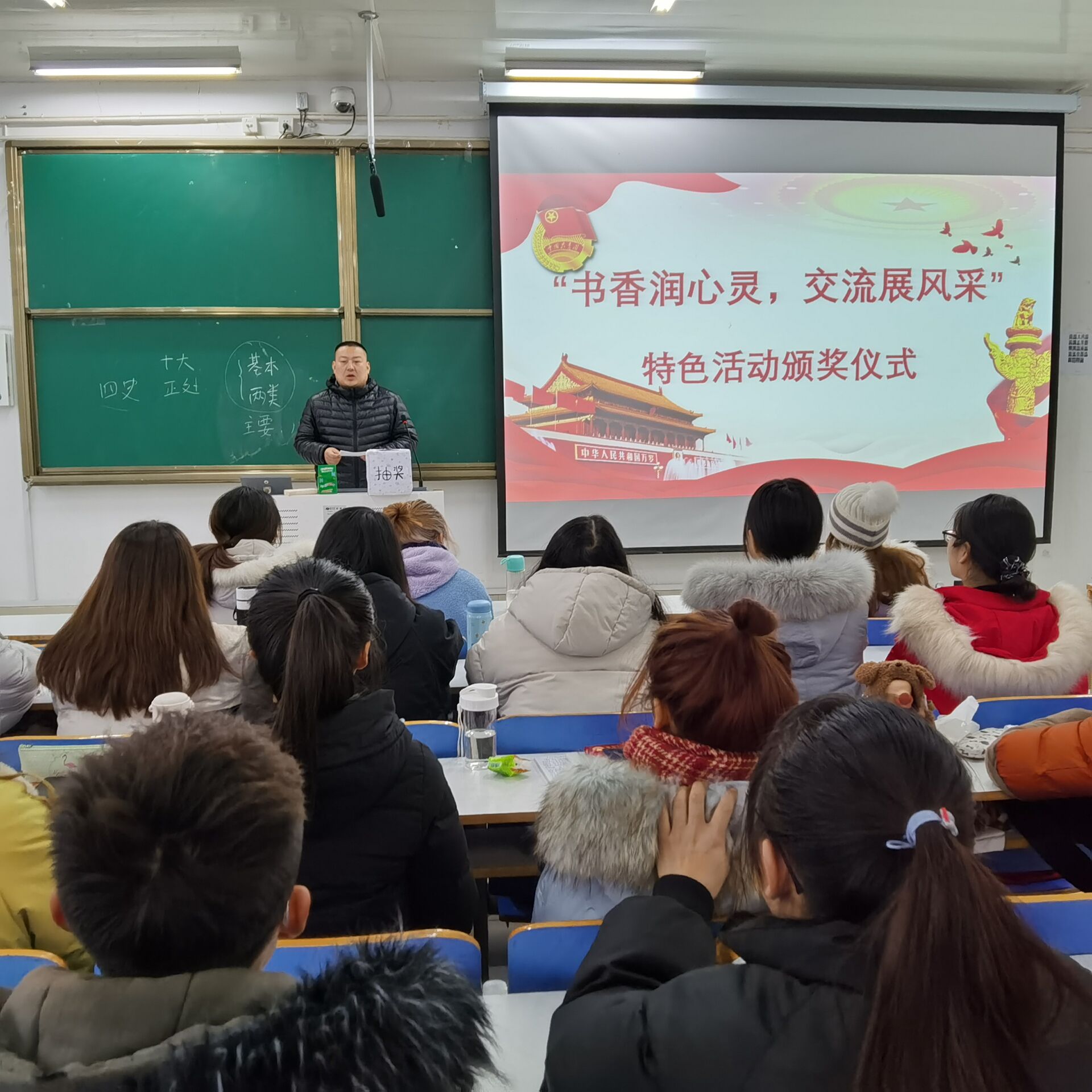 12月29日上午,金年会官网2019级思想政治教育二班于社科楼516教室举行“书香润心灵,交流展风采”活动颁奖仪式。金年会官网党委副书记何晓坚、辅导员陶青青及金年会官网2019级思想政治教育二班全体成员共同参会。活动由副班长吕昂主持。