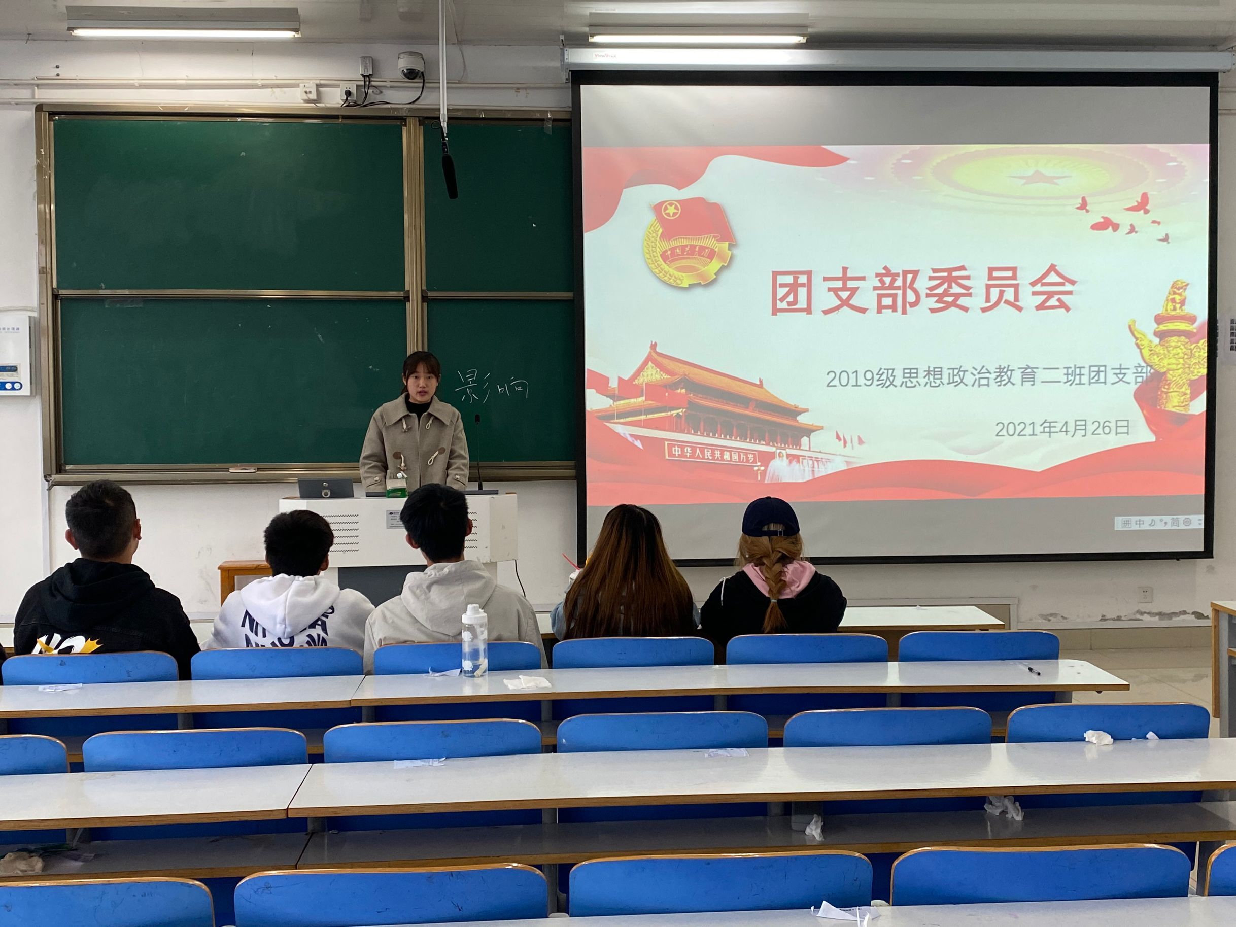 4月26日上午,金年会jinnianhuicom2019级思想政治教育二班于社科楼516教室召开团支部委员会。2019级思想政治教育二班全体班委共同参会。会议由团支书孙雅娴主持。