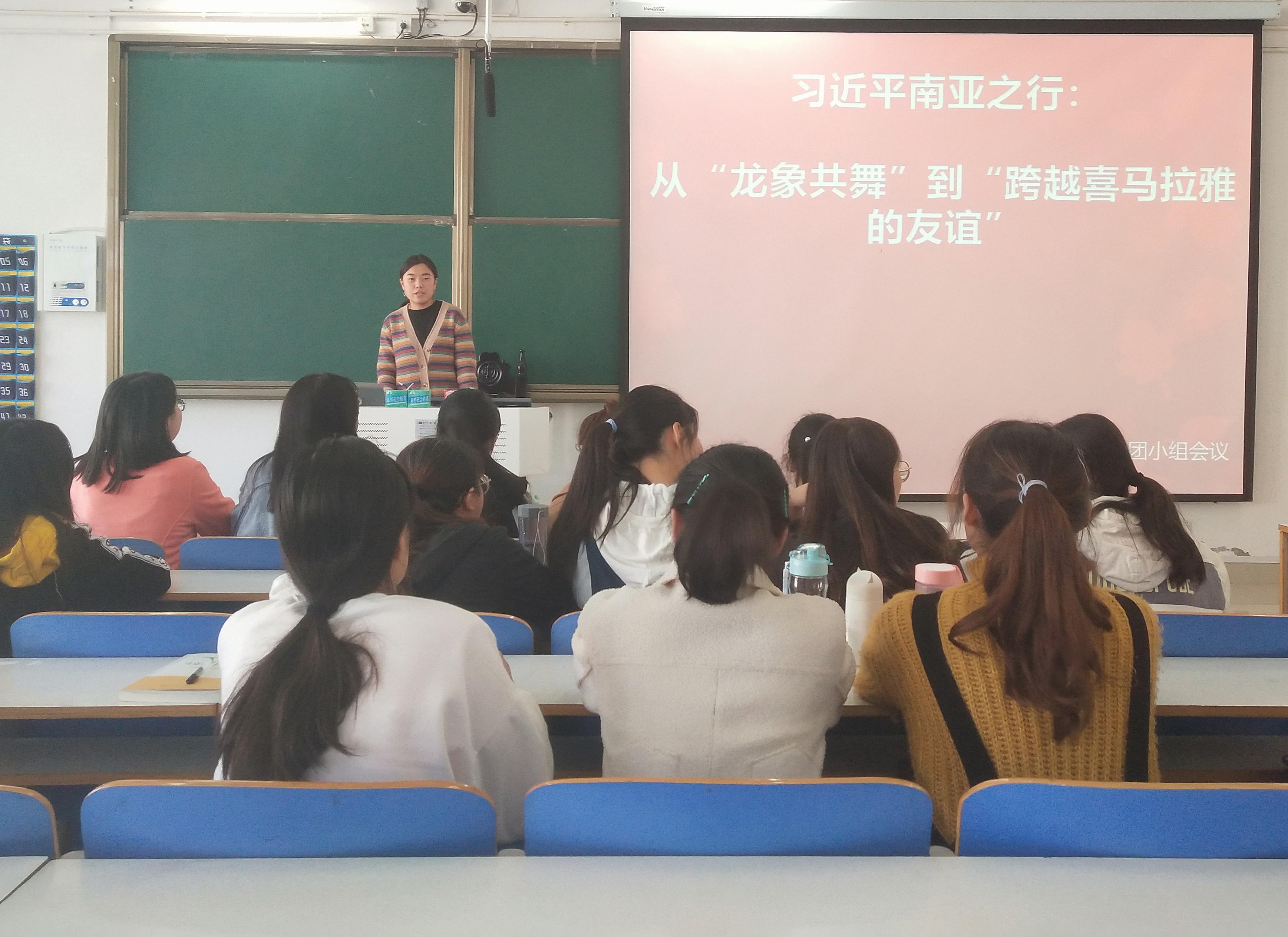 10月17日上午,金年会官网2018级思想政治教育第二团支部第二团小组在社科楼516教室顺利开展主题为“习近平南亚之行:从龙象共舞到跨越喜马拉雅的友谊”团小组会。会议由团小组成员付怡帆主持。