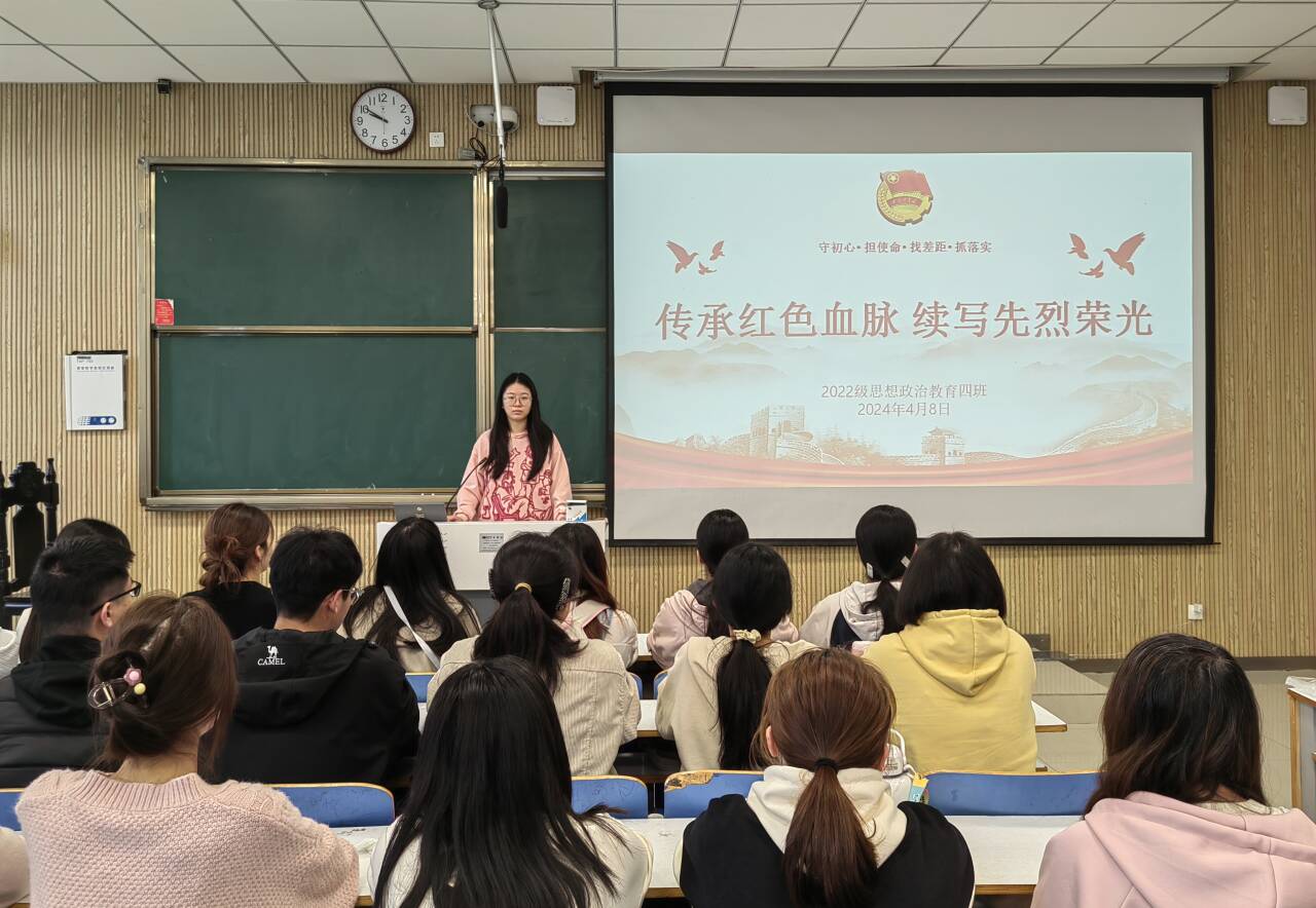 4月8日上午,金年会jinnianhuicom2022级思想政治教育四班在社科楼515教室组织召开“传承红色血脉,续写先烈荣光”主题团课。金年会官网2022级思想政治教育四班全体成员参与本次团课。本次团课由团支书牛志杰主持。