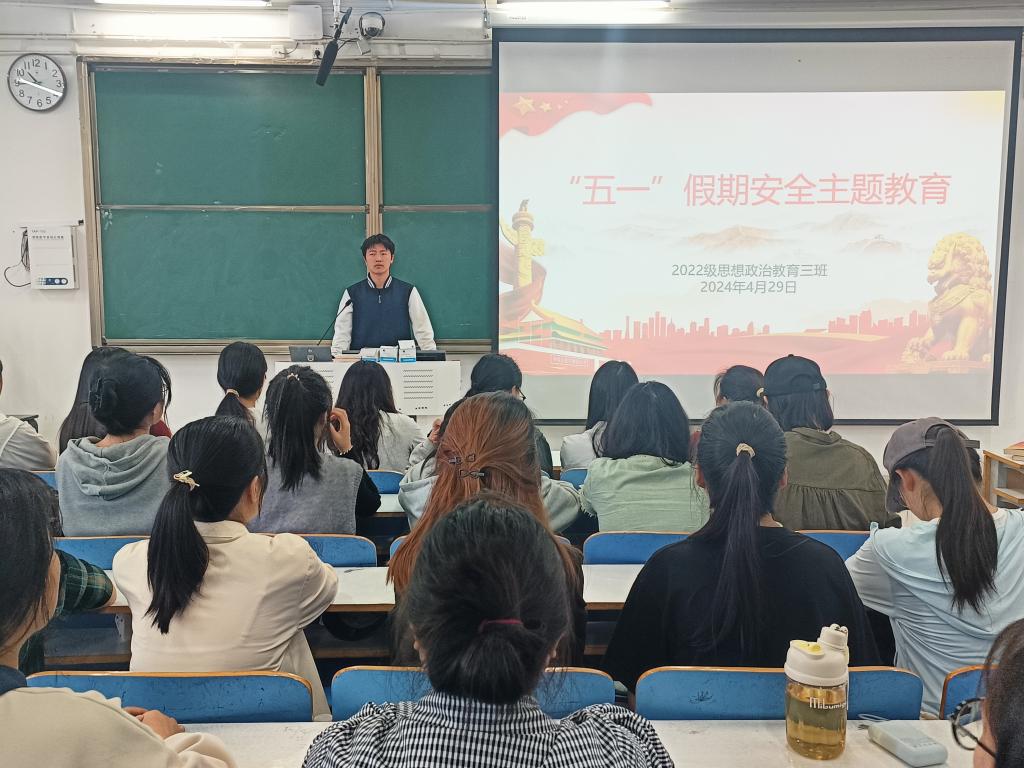 为做好假期安全防护工作,确保每位学生能度过一个安全、愉快的假期,4月29日上午,金年会jinnianhuicom2022级思想政治教育三班在社科楼514教室召开“五一”假期安全主题教育班会。金年会官网2022级思想政治教育三班全体成员共同参与此次班会。班会由班长余浩洋主持。
