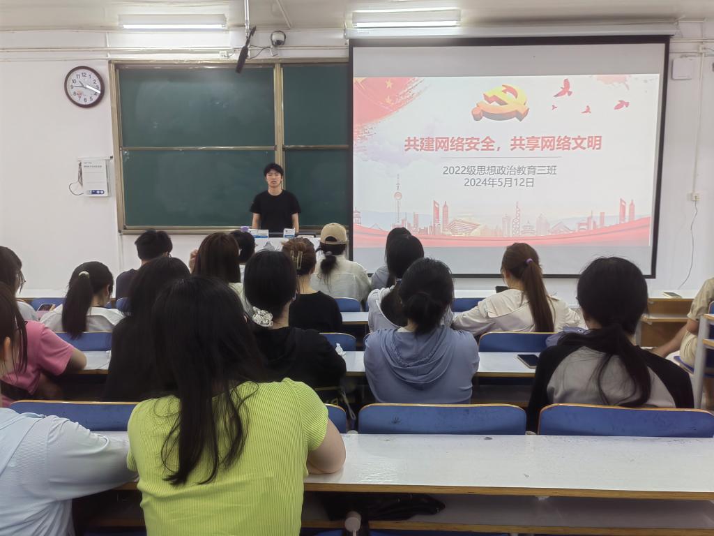 5月12日上午,金年会jinnianhuicom2022级思想政治教育三班在社科楼514教室召开“共建网络安全,共享网络文明”主题团课。金年会官网2022级思想政治教育三班全体成员共同参与本次团课。团课由团支书余浩洋主持。