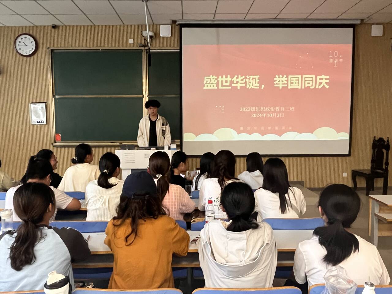 10月3日上午,金年会jinnianhuicom2023级思想政治教育三班在社科楼515召开“盛世华诞,举国同庆”主题班会。金年会官网2023级思想政治教育三班全体同学共同参与本次班会,班会由团支书郝瀚主持。