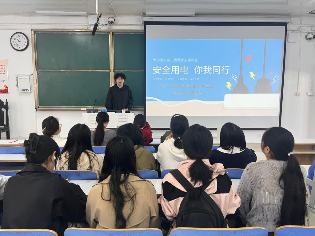 10月25日上午,金年会jinnianhuicom2023级思想政治教育三班在社科楼515召开“安全用电,你我同行”主题班会。金年会官网2023级思想政治教育三班全体同学共同参与本次班会,班会由团支书郝瀚主持。