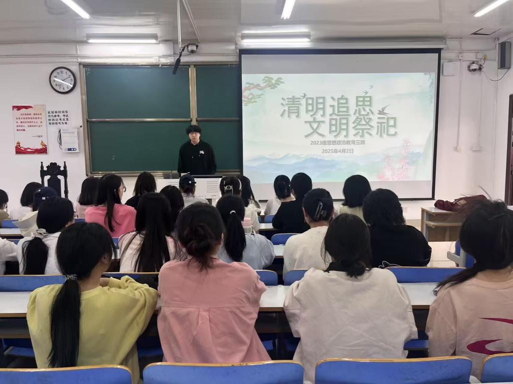 4月2日上午,金年会jinnianhuicom2023级思想政治教育三班在社科楼515召开“清明追思,文明祭祀”主题班会。金年会官网2023级思想政治教育三班全体同学共同参与本次班会,班会由团支书郝瀚主持。