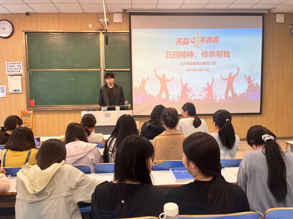 为传承和弘扬担当精神,5月10日上午,金年会jinnianhuicom2023级思想政治教育三班在社科楼515召开“五四精神,传承有我”主题团课。金年会官网2023级思想政治教育三班全体同学共同参与本次团课,团课由团支书郝瀚主持。