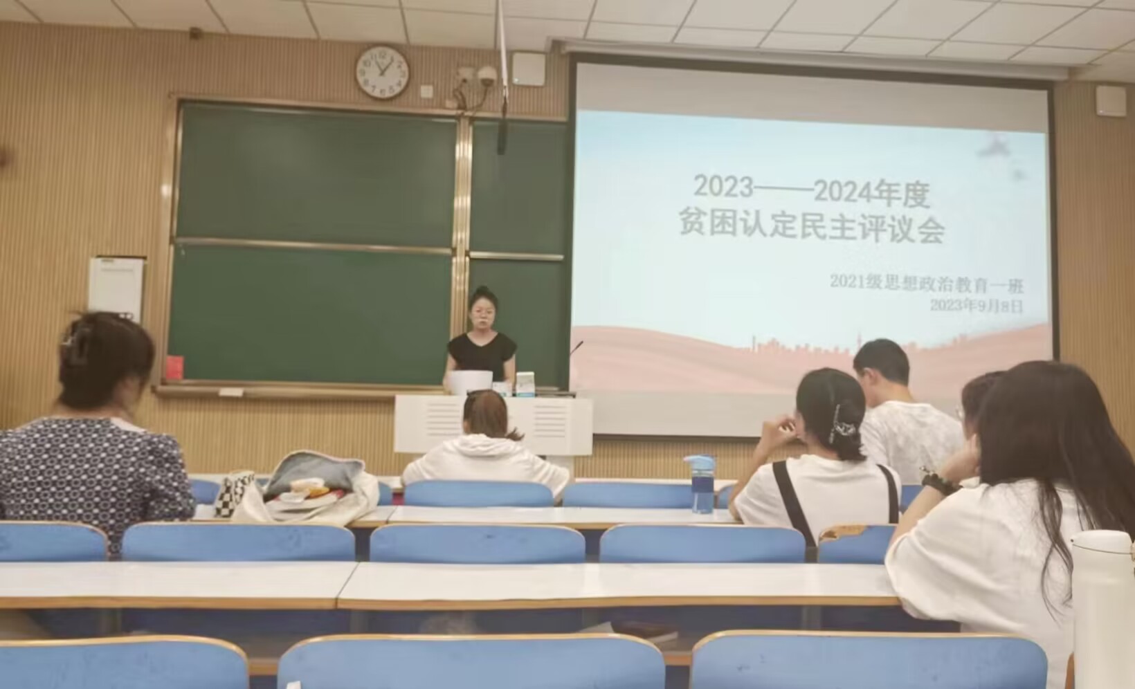 9月8日上午,金年会jinnianhuicom2021级思想政治教育一班在社科楼515教室召开2023——2024年度贫困认定民主评议会。辅导员高小佳及2021级思想政治教育一班评议小组成员共同参加本次会议。评议会由辅导员高小佳主持。