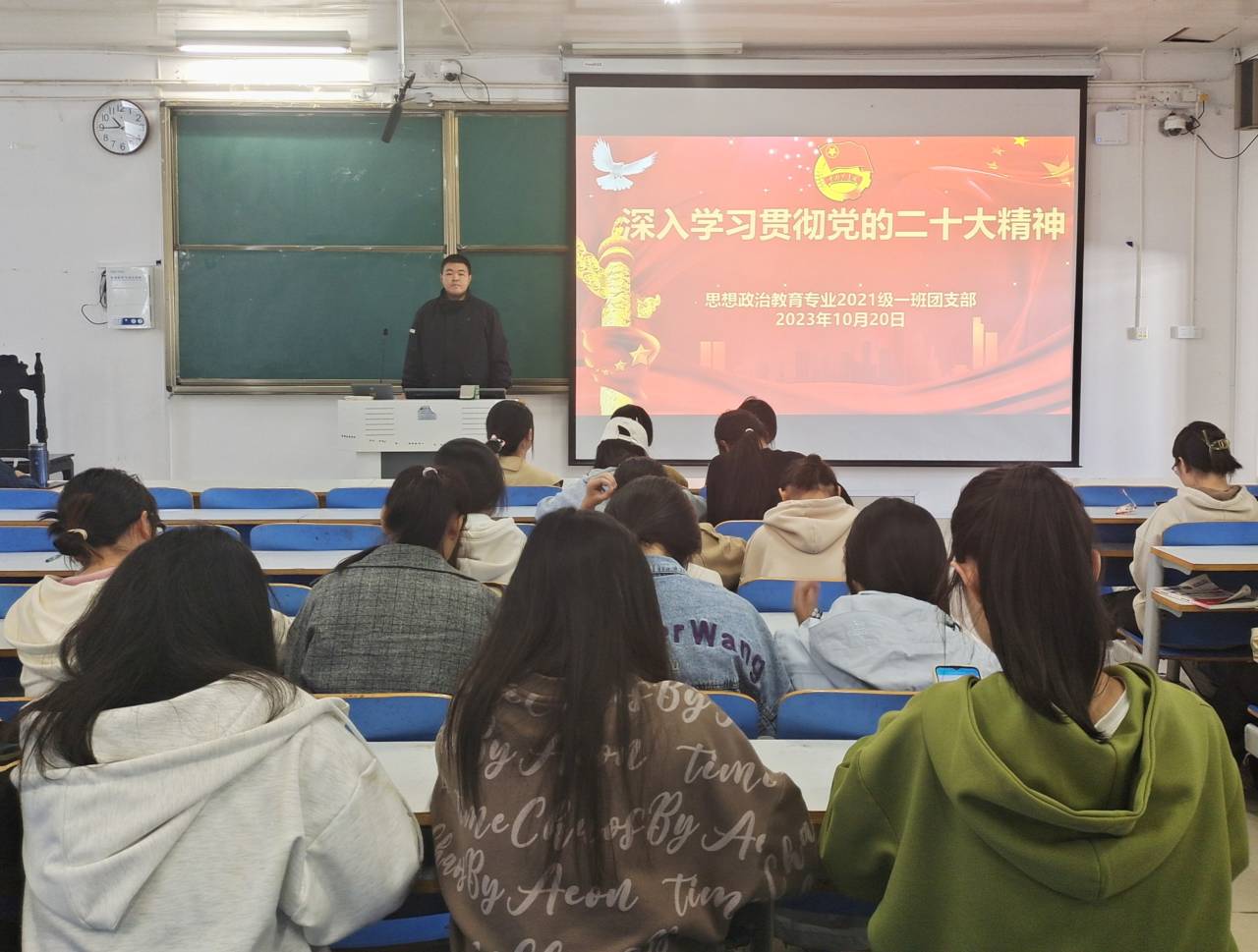 10月20日上午,金年会jinnianhuicom2021级思想政治教育一班在社科楼514教室召开“深入学习贯彻党的二十大精神”主题团课。2021级思想政治教育一班全体团员参加了本次团课。团课由团支书戴翰林主持。