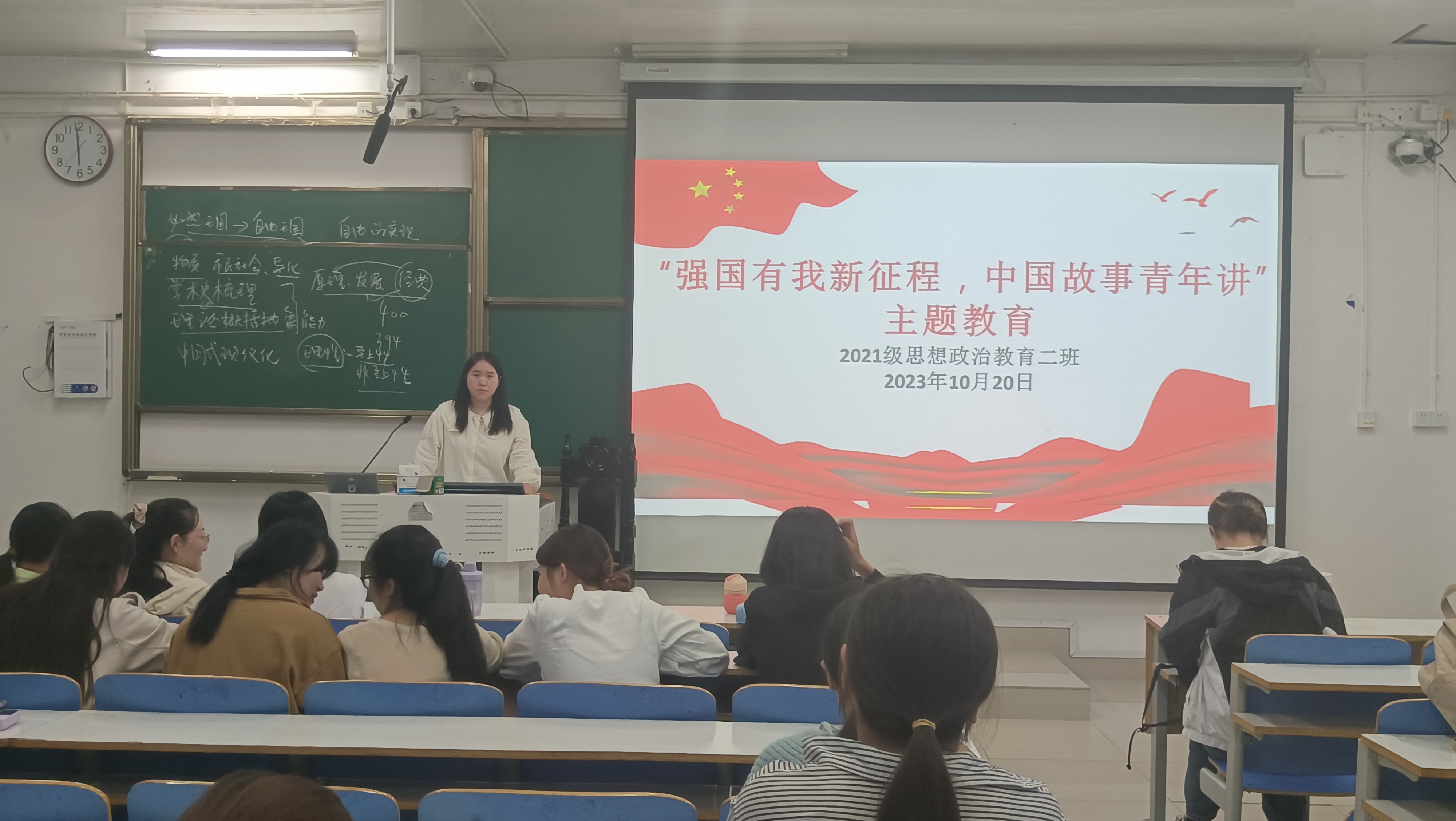 10月20日下午,金年会jinnianhuicom2021级思想政治教育二班在社科楼514教室召开“强国有我新征程,中国故事青年讲”主题团课。2021级思想政治教育二班全体团员参加此次团课。团课由团支书王婧欣主持。