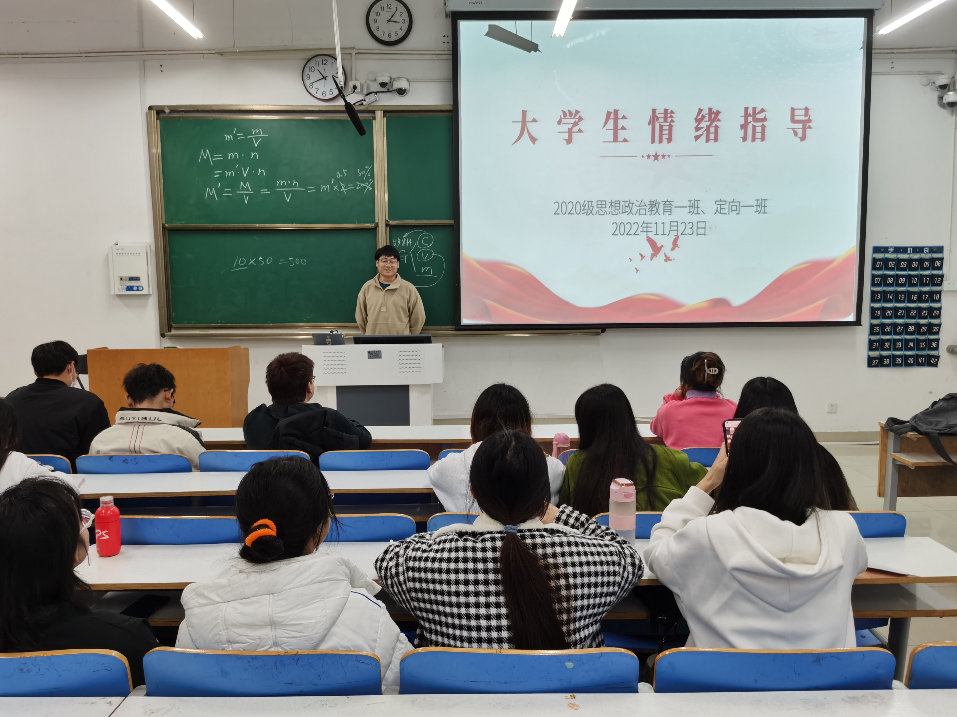 11月23日下午,金年会jinnianhuicom2020级思想政治教育一班、定向一班在社科楼415教室顺利举办“大学生情绪指导”心理班会。金年会jinnianhuicom2020级思想政治教育一班、定向一班全体学生聆听了此次班会,班会由心理委员王旭主持。