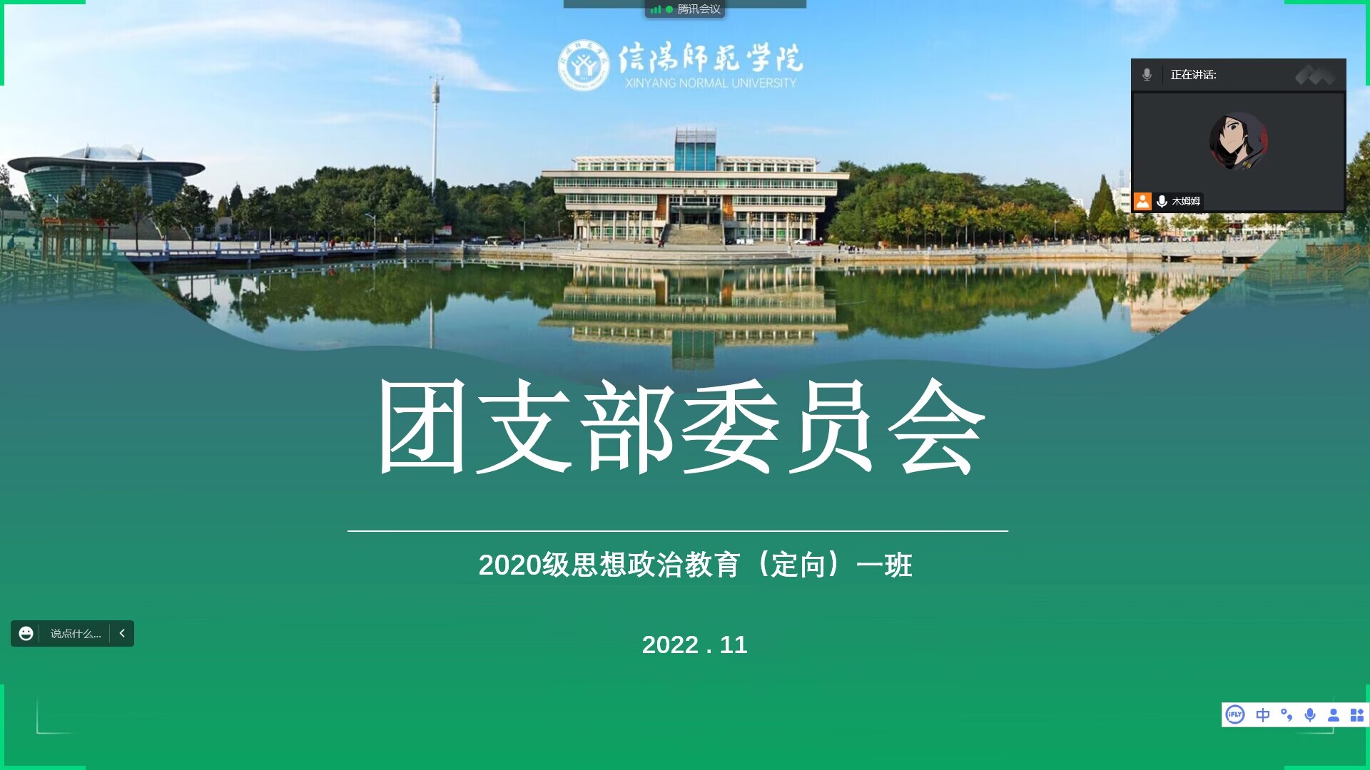 11月24日晚上,金年会jinnianhuicom2020级思想政治教育定向一班顺利举办了团支部委员会。会议通过线上的形式举办,2020级思想政治教育定向一班全体团支部委员聆听了此次会议。