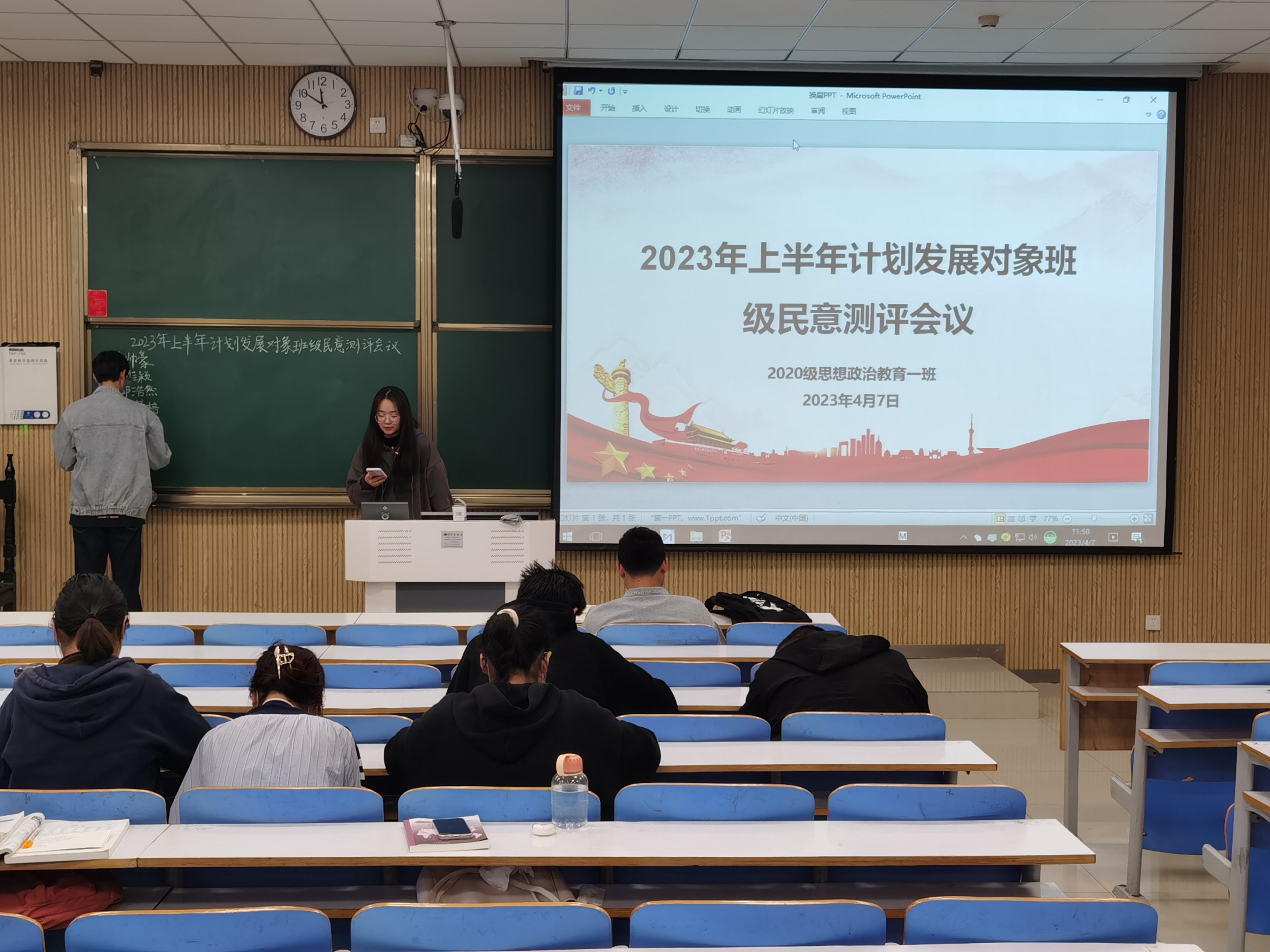 4月7日上午,金年会jinnianhuicom2020级思想政治教育一班在社科楼515教室召开2023年上半年计划发展对象班级民意测评会议。2020级思想政治教育一班全体同学参加了本次会议,会议由团支部书记卢茜雨主持。