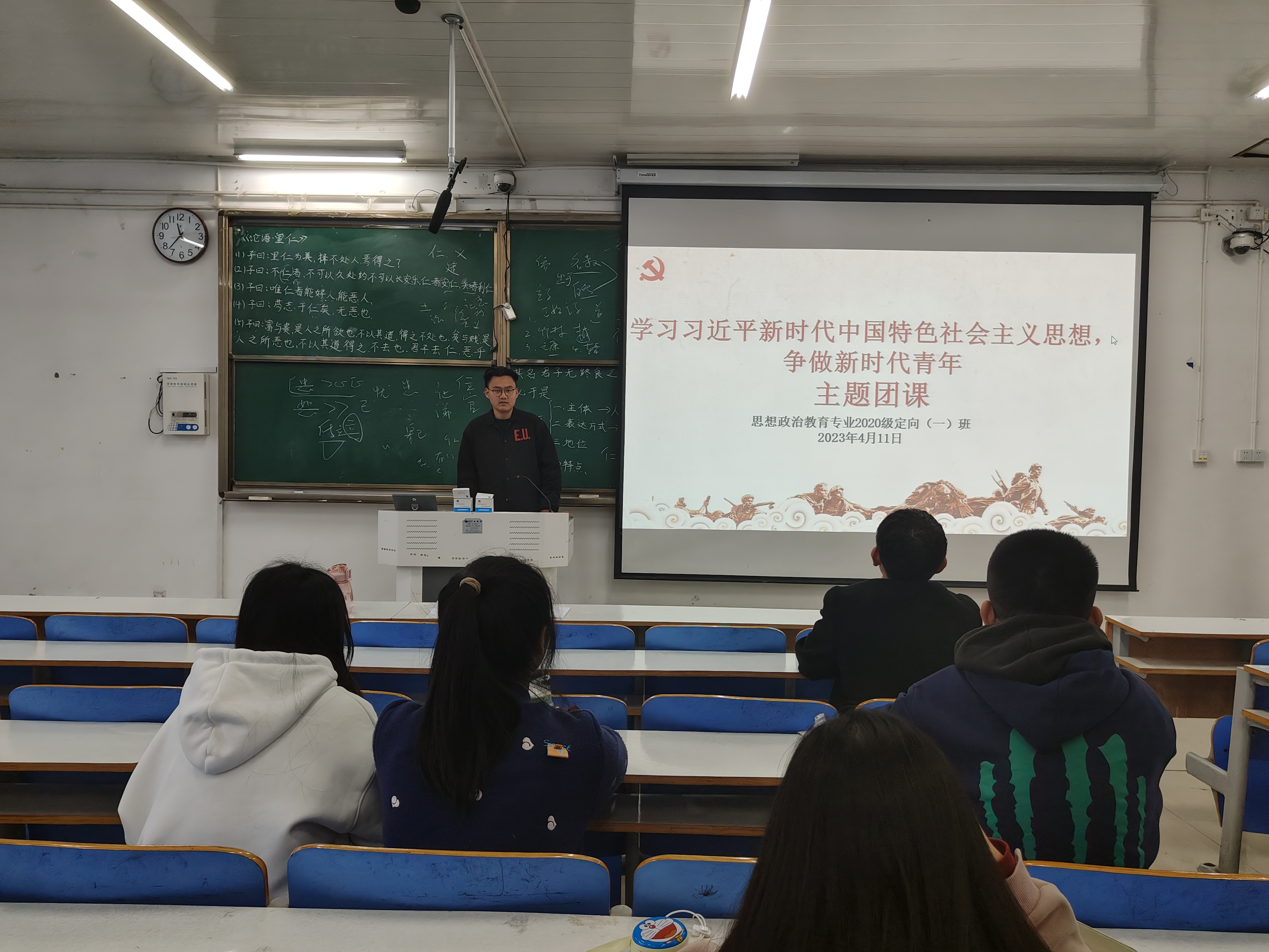 4月11日上午,金年会jinnianhuicom2020级思想政治教育定向一班在社科楼514教室顺利开展了学习习近平新时代中国特色社会主义思想,争做新时代青年主题团课。此次团课由团支书朱紫峰主持。